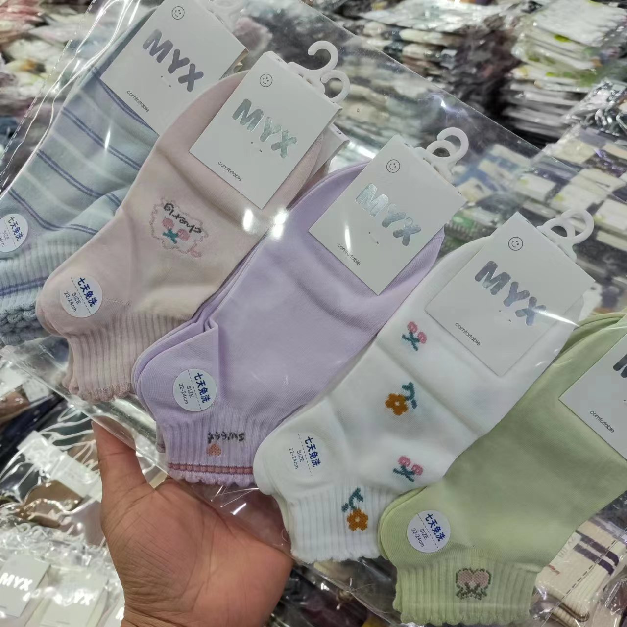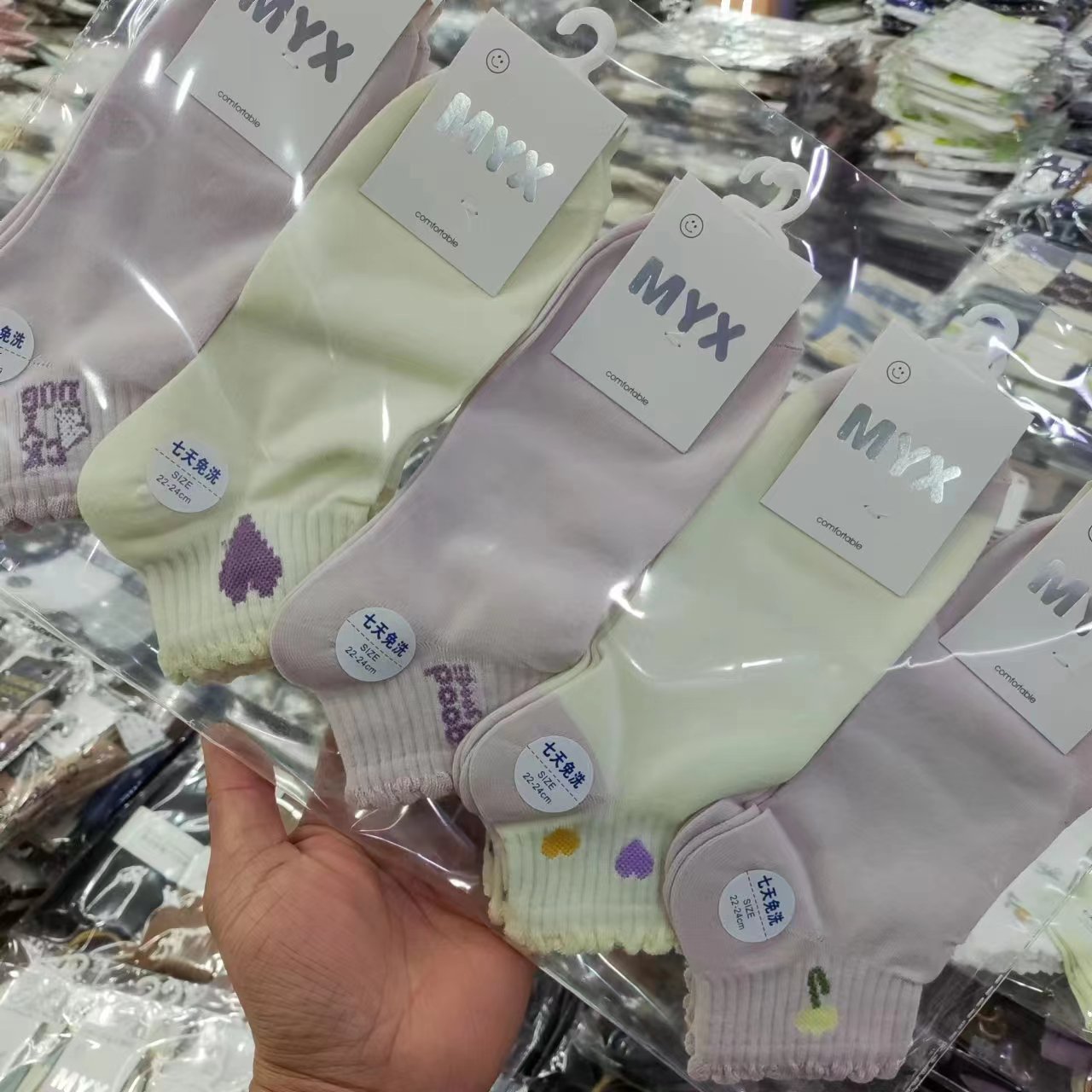 봄과 여름 새로운 남성과 여성의 짧은 튜브 플랫 스포츠 양말 컬러 문자 조수 학술 스타일 면화 재고 도매스토어 가기