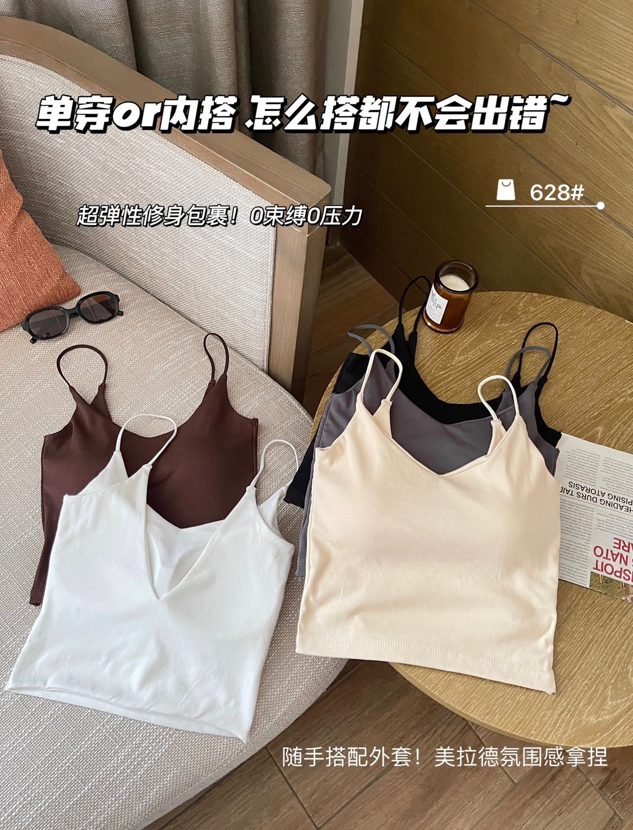 옷 옷걸이 V 넥 핫 걸 캐미솔 여성용 원피스 컵 뷰티 백 속옷은 섹시한 민소매 탑 밖에서 입을 수 있습니다.스토어 가기