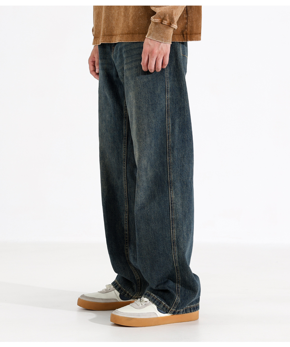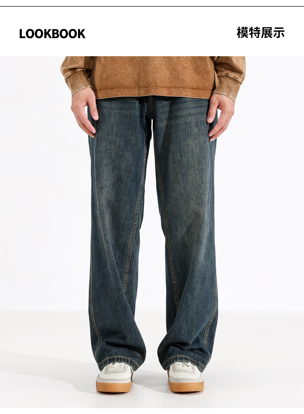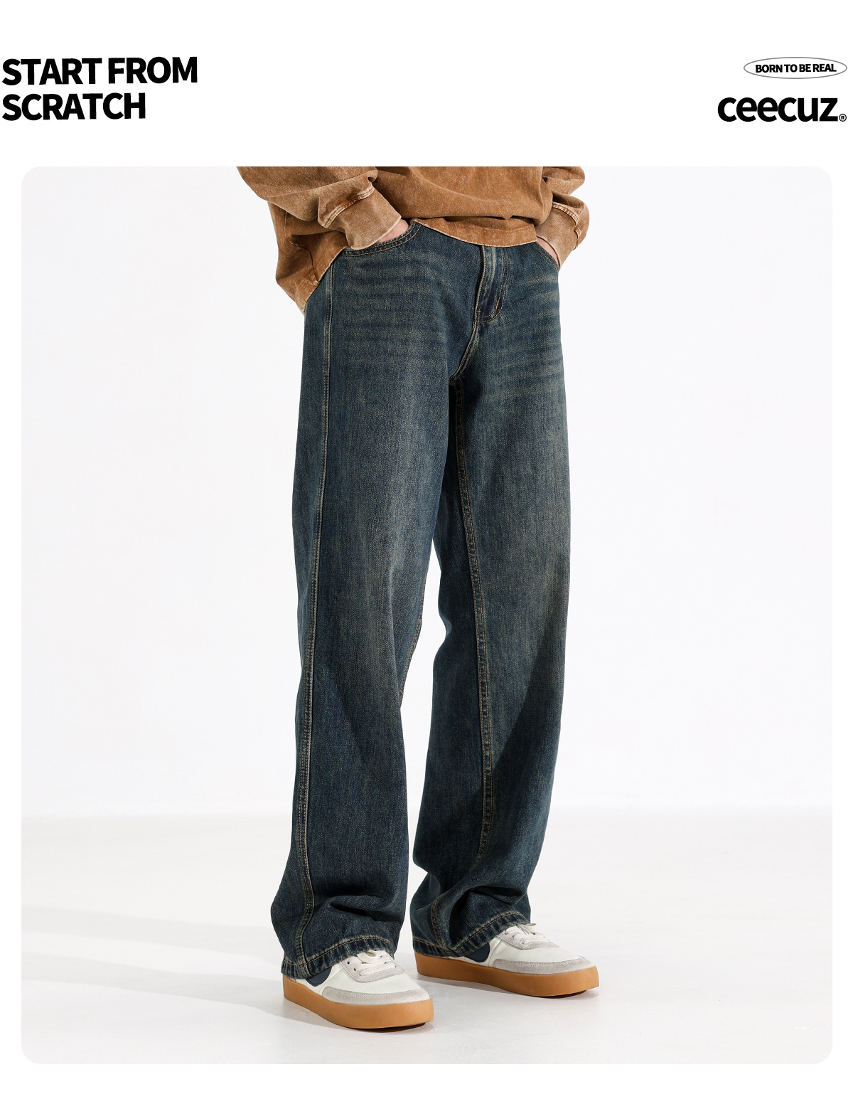 시쿠즈 가을 신상 아메리칸 레트로 스트레이트 플리스 안감 두꺼운 데님 팬츠 남성 루즈핏 큰 사이즈 와이드 레그 롱 팬츠스토어 가기