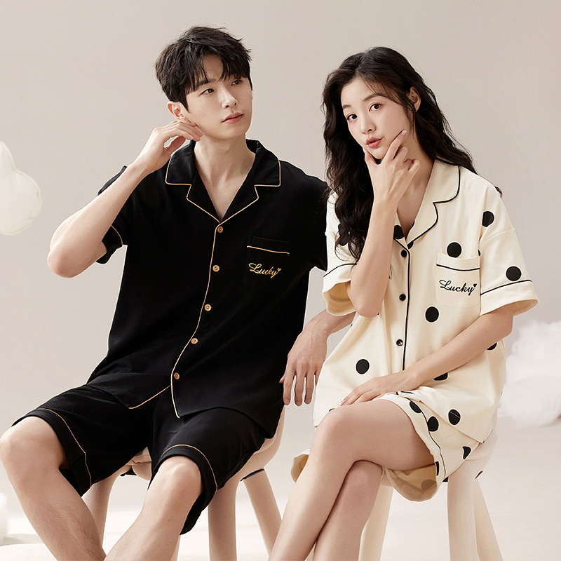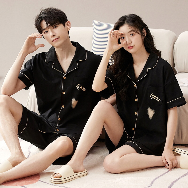 커플 잠옷 남자 여름 면화 반팔 한국 만화 귀여운 남자와 여자의 여름 얇은 홈스토어 가기