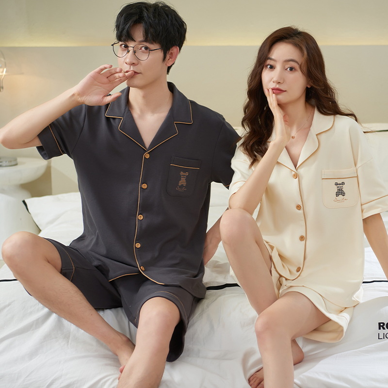 커플 잠옷 남자 여름 면화 반팔 한국 만화 귀여운 남자와 여자의 여름 얇은 홈