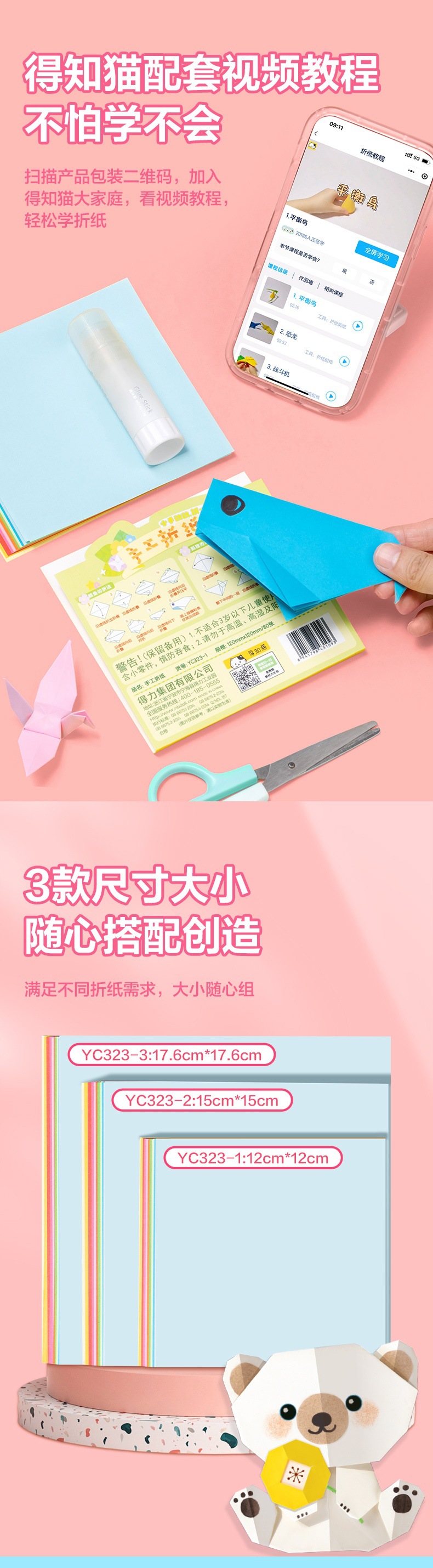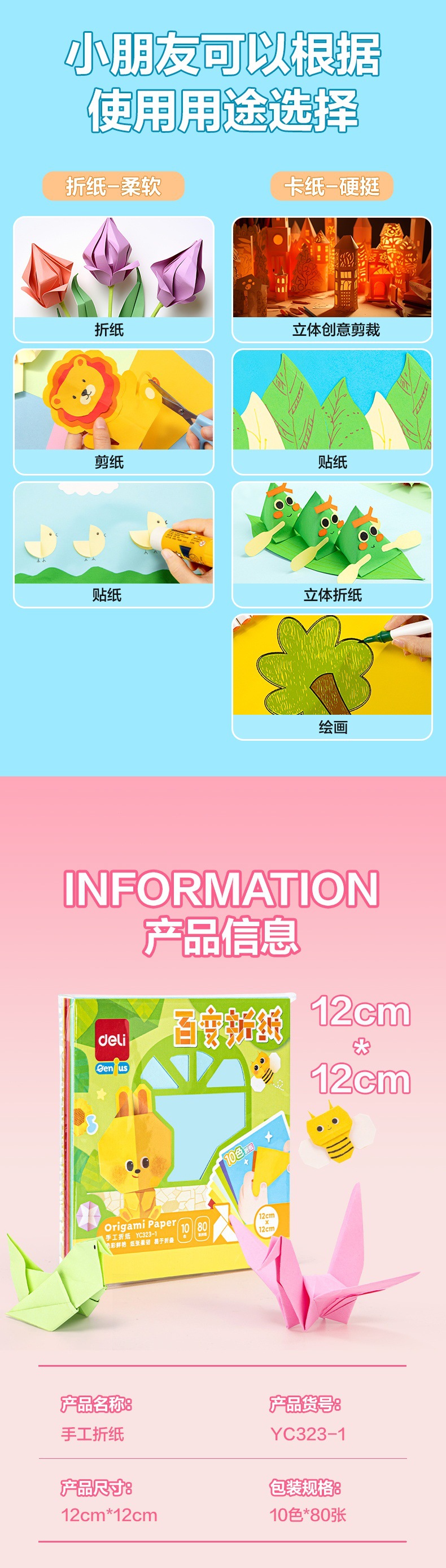 델리 YC323 종이 접이식 판지 컬러 종이 수제 어린이 생산 재료 DIY 종이 절단 종이 종이 종이 크레인 아트 특수 종이