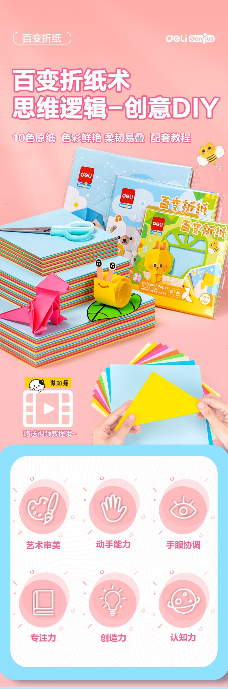 델리 YC323 종이 접이식 판지 컬러 종이 수제 어린이 생산 재료 DIY 종이 절단 종이 종이 종이 크레인 아트 특수 종이스토어 가기