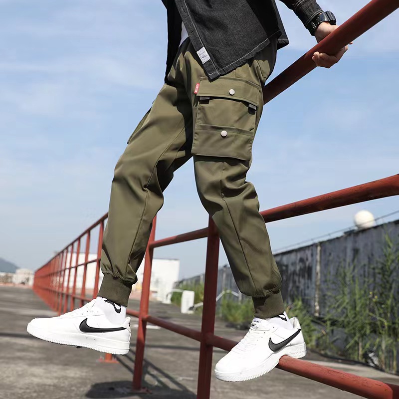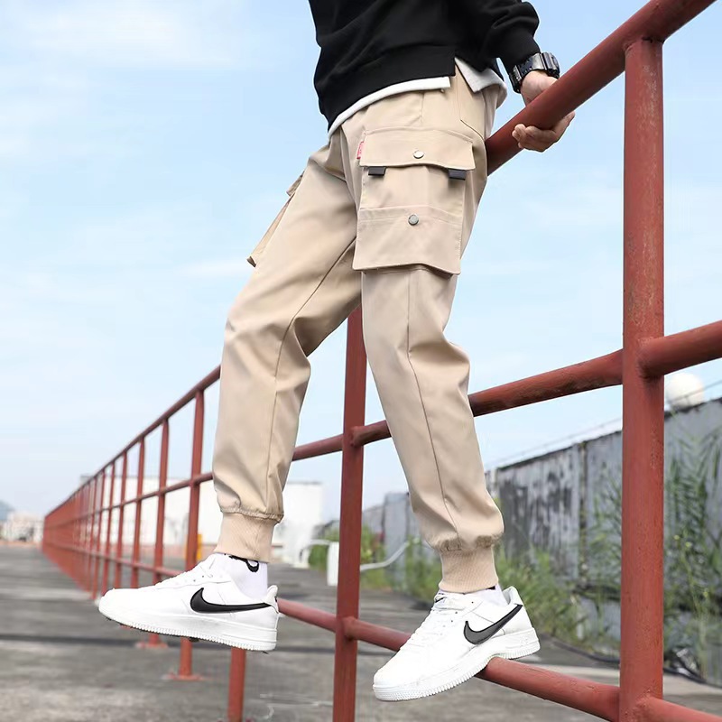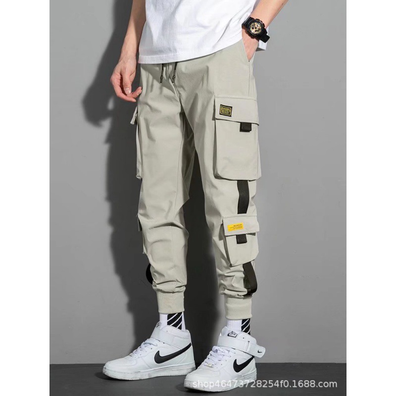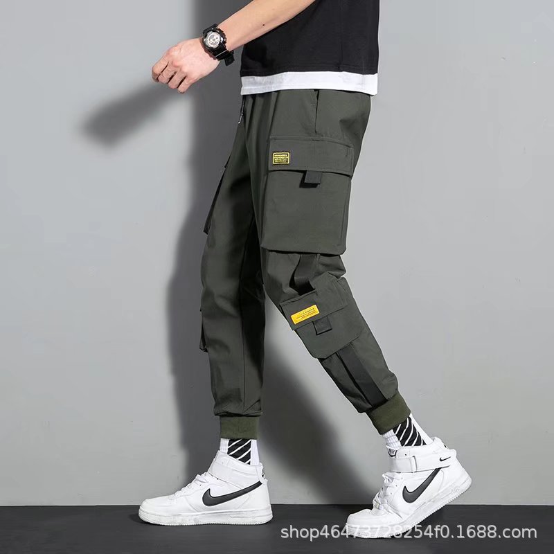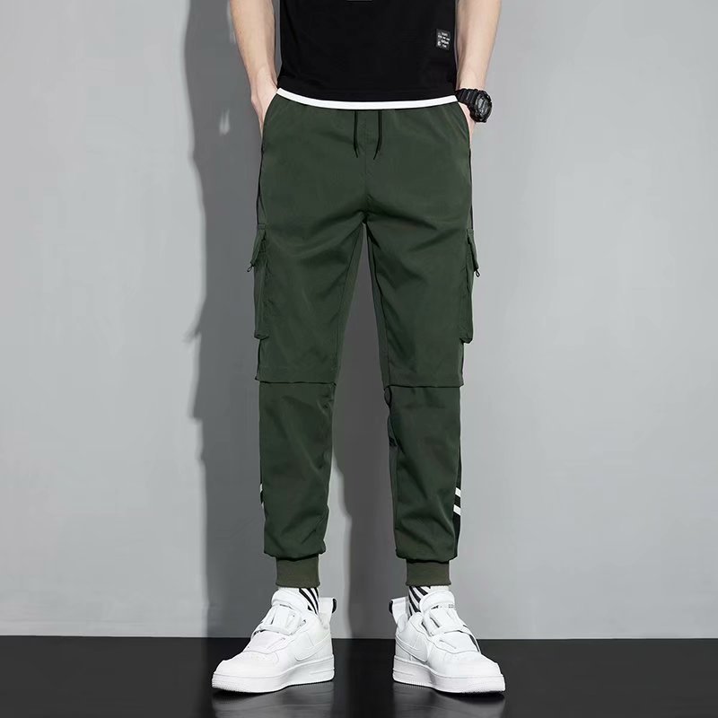 2021 새 바지 남성 한국 스타일의 세련된 느슨한 학생, 세련된 캐주얼 바지 세련된 발목 묶음 바지