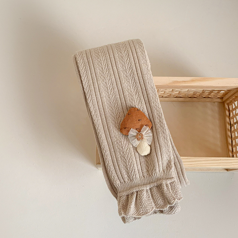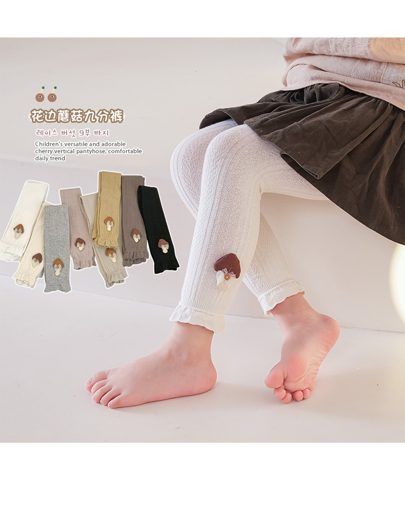 소녀 레깅스 봄과 가을 얇은 단색 외부 착용 귀여운 버섯 내부 레깅스 어린이 새로운 레이스 9 포인트