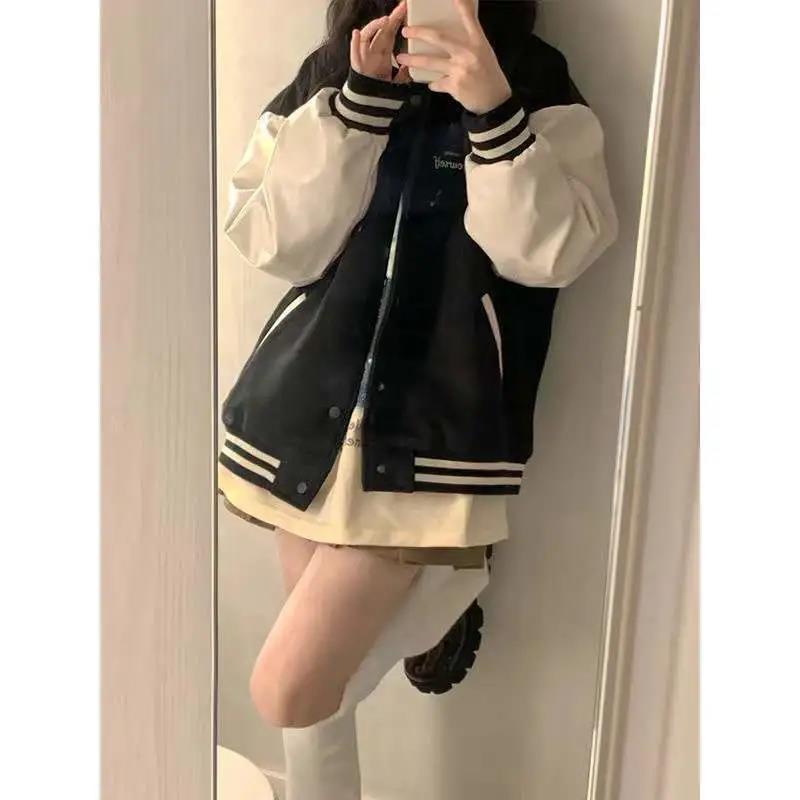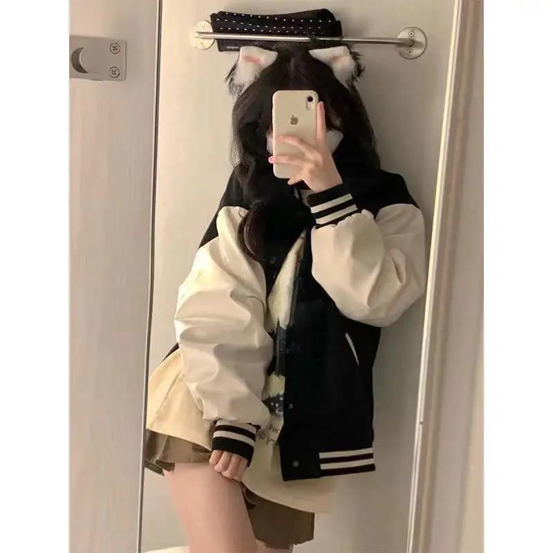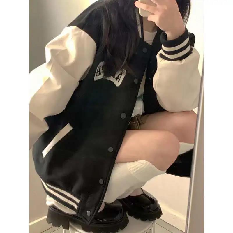 한국 스타일, 느슨한 학생 야구 유니폼 여성 봄과 가을 하라주쿠 스타일 다재다능한 얇은 재킷 홍콩 스타일 카디건 재킷 패션스토어 가기