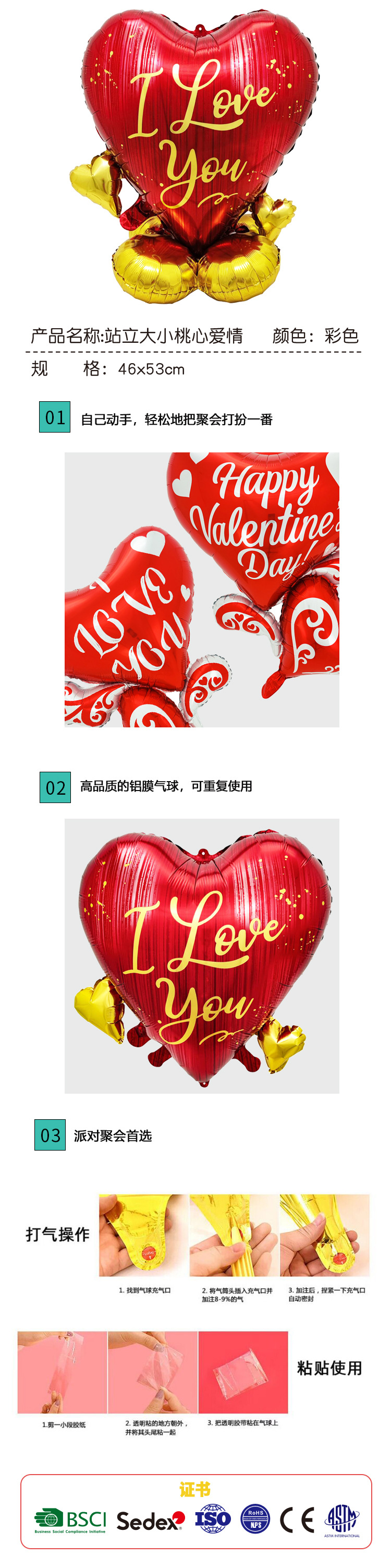 • BKT109 서있는 크기 복숭아 심장 사랑 (인플레이션 후 46*53cm)