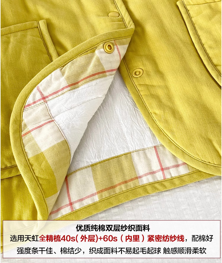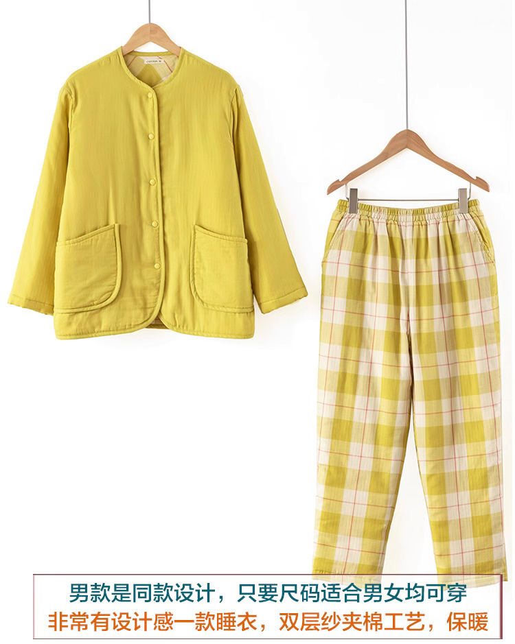 무인쇄 일본식 고급 순면 이중 거즈 누빔 잠옷 여성용 가을 겨울 홈웨어 남성용 외출복 면옷
