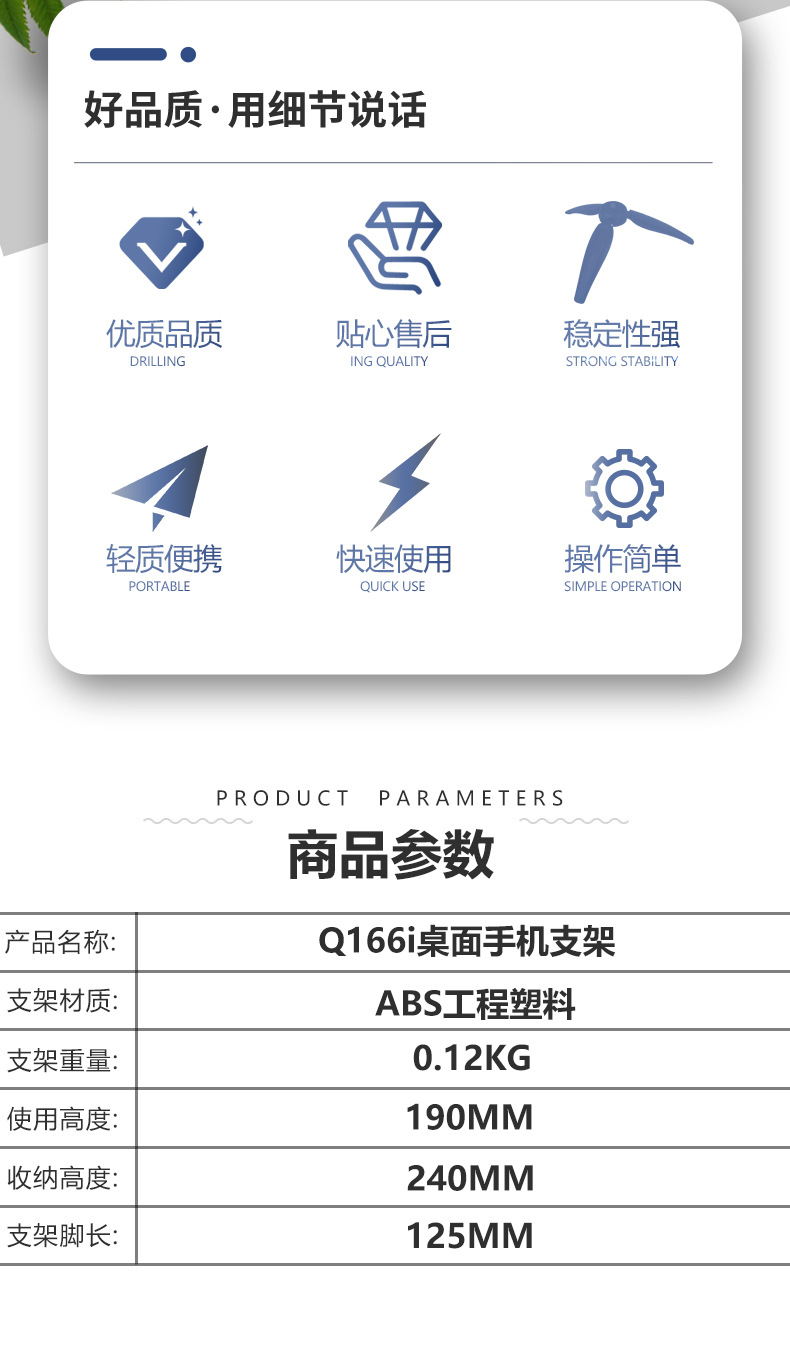 Q166i 데스크탑 삼각대 휴대 전화 스탠드 시계 비디오 온라인 교육스토어 가기