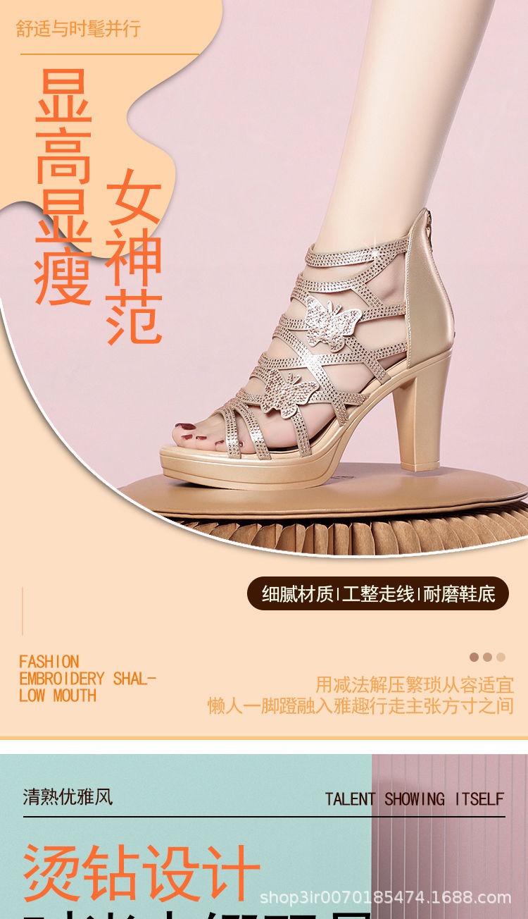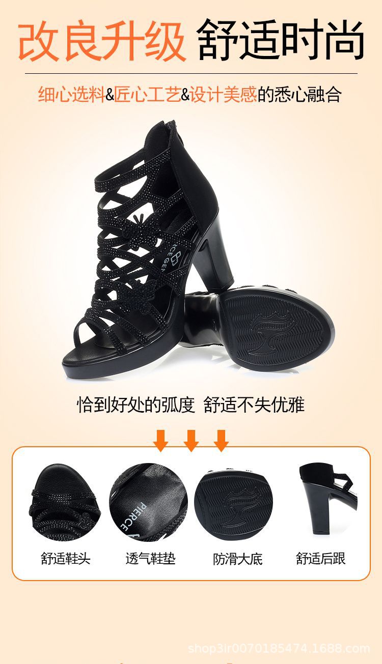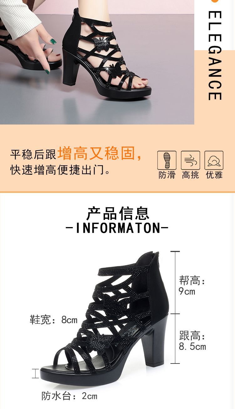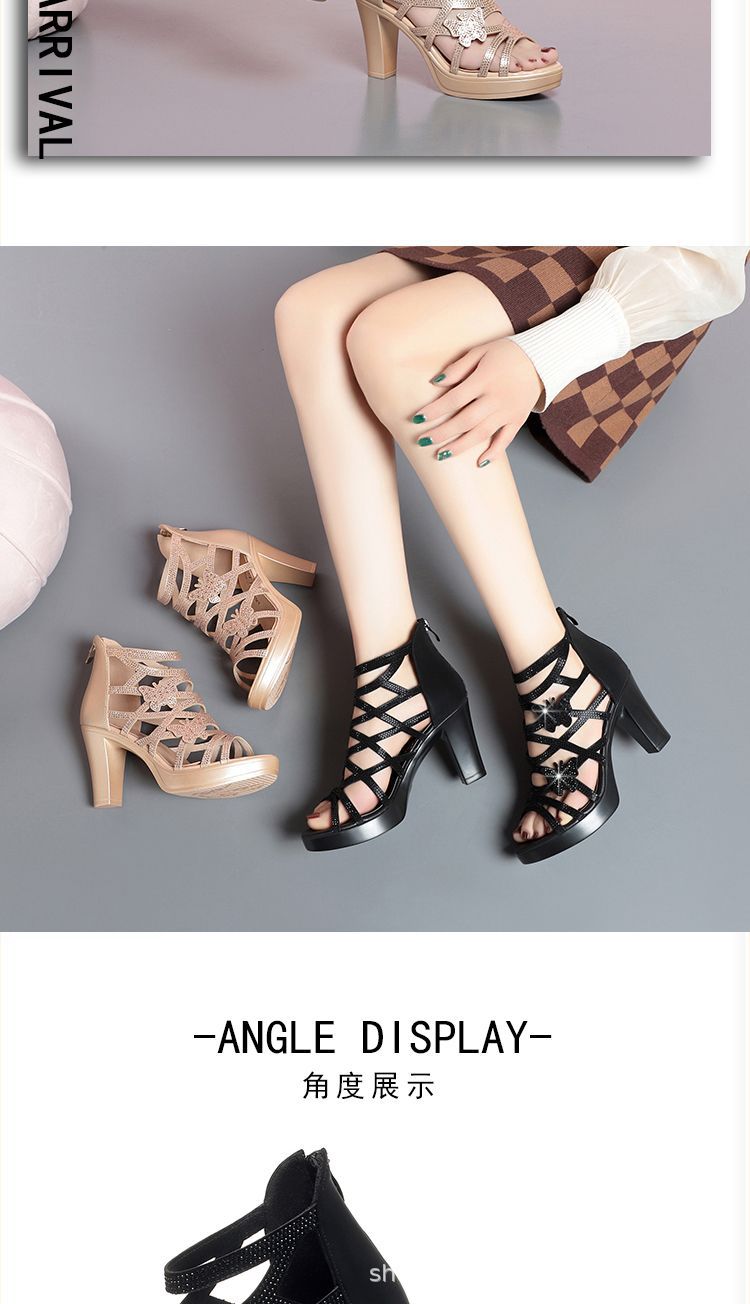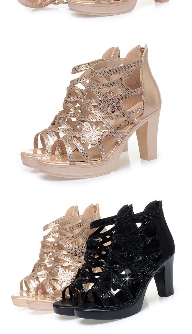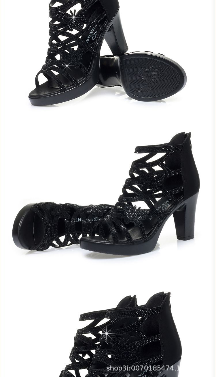 트루 소프트 가죽 샌들 여성용 2024 년 여름 새로운 오줌 발가락 신발 여성용 두꺼운 힐링 할로우 라인스톤 여성용 하이힐 샌들스토어 가기