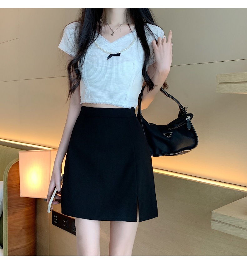 2023 새로운 블랙 하이 웨이스트 A 라인 스커트 여성의 봄과 가을 세트 패브릭 플러스 사이즈 시스 여름 스플릿 스커트스토어 가기