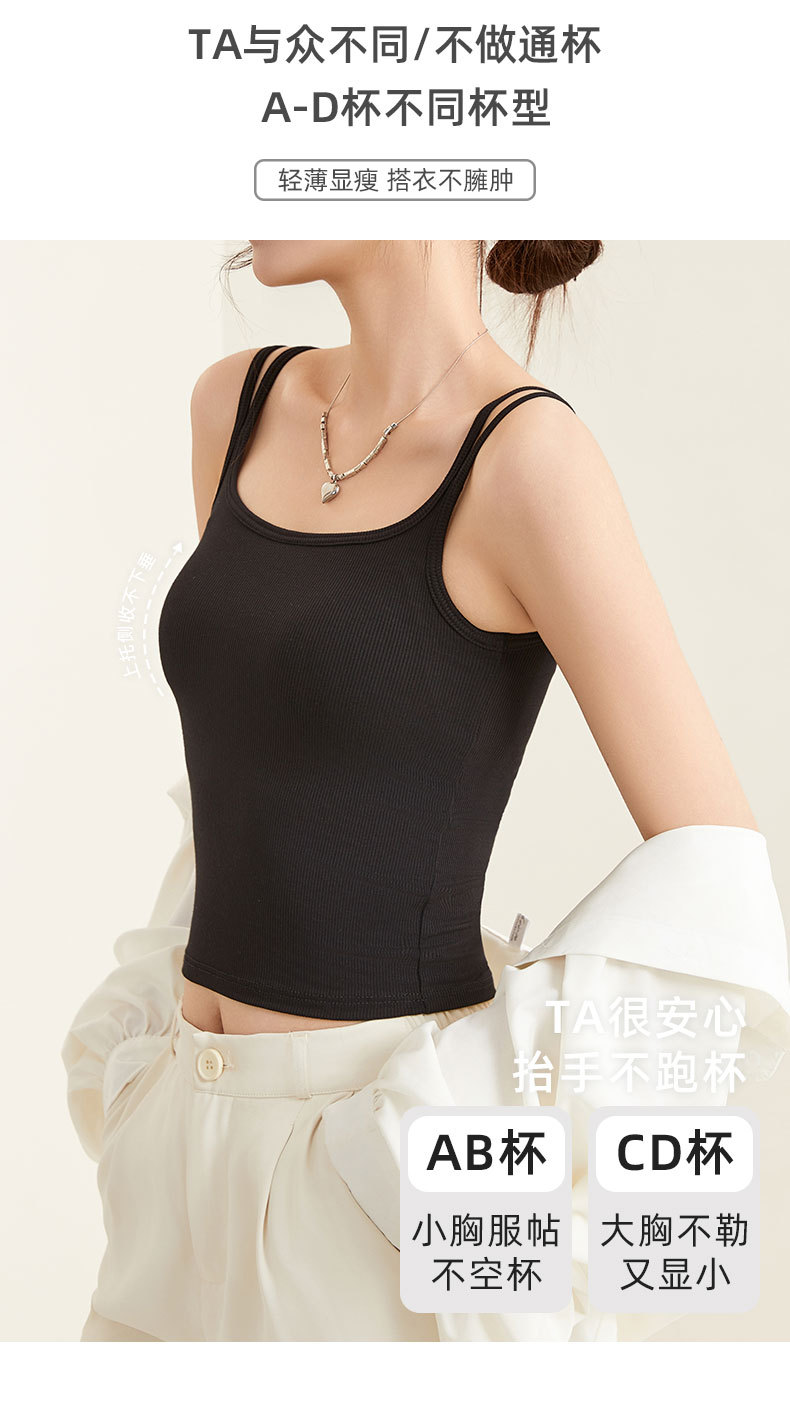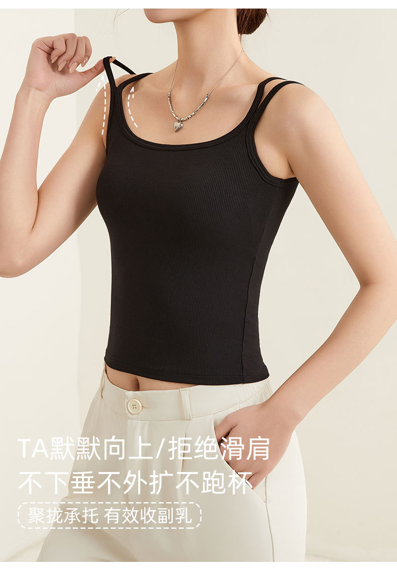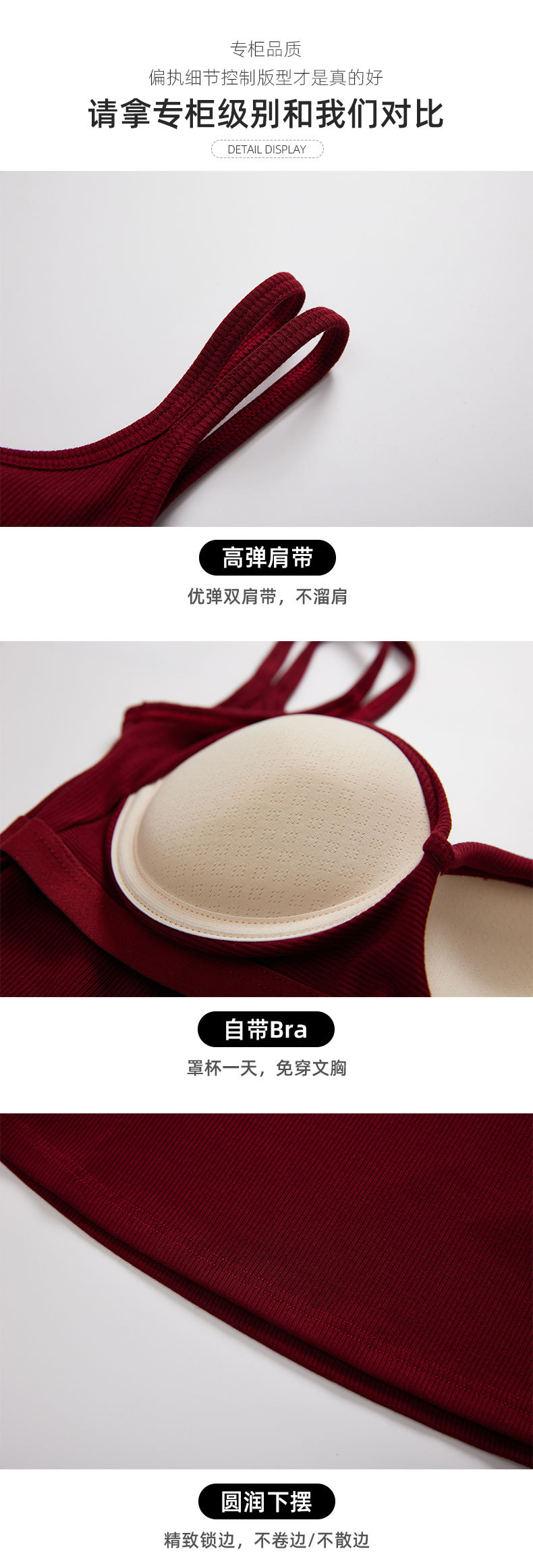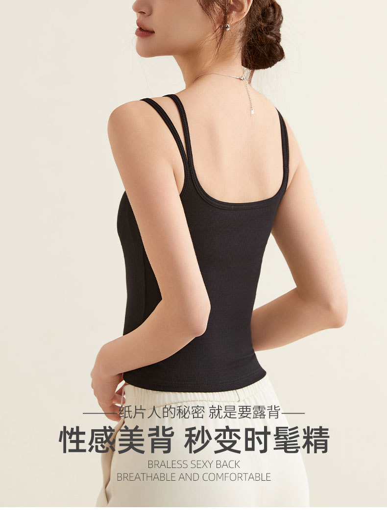 봄 여름 신상품 가슴 패드가 있는 프렌치 스타일 더블 숄더 스트랩 캐미솔 여성용 이너웨어 브라 일체형 아름다운 등 디자인 외출용 가능스토어 가기