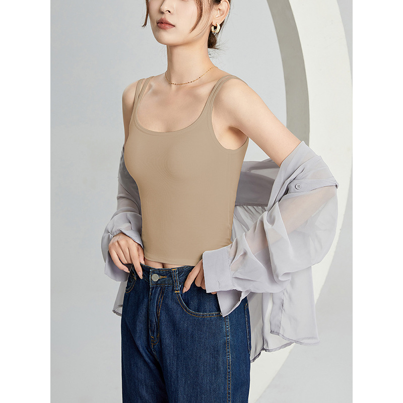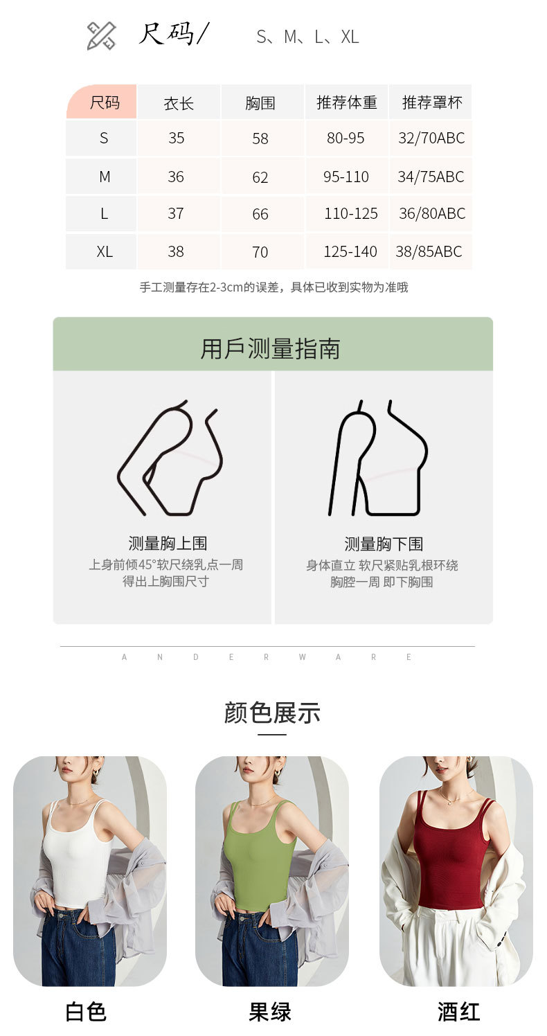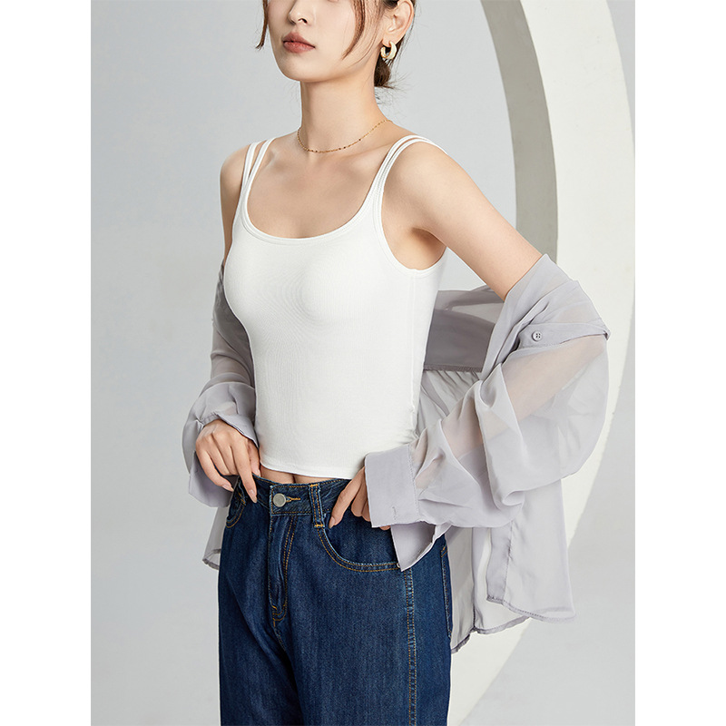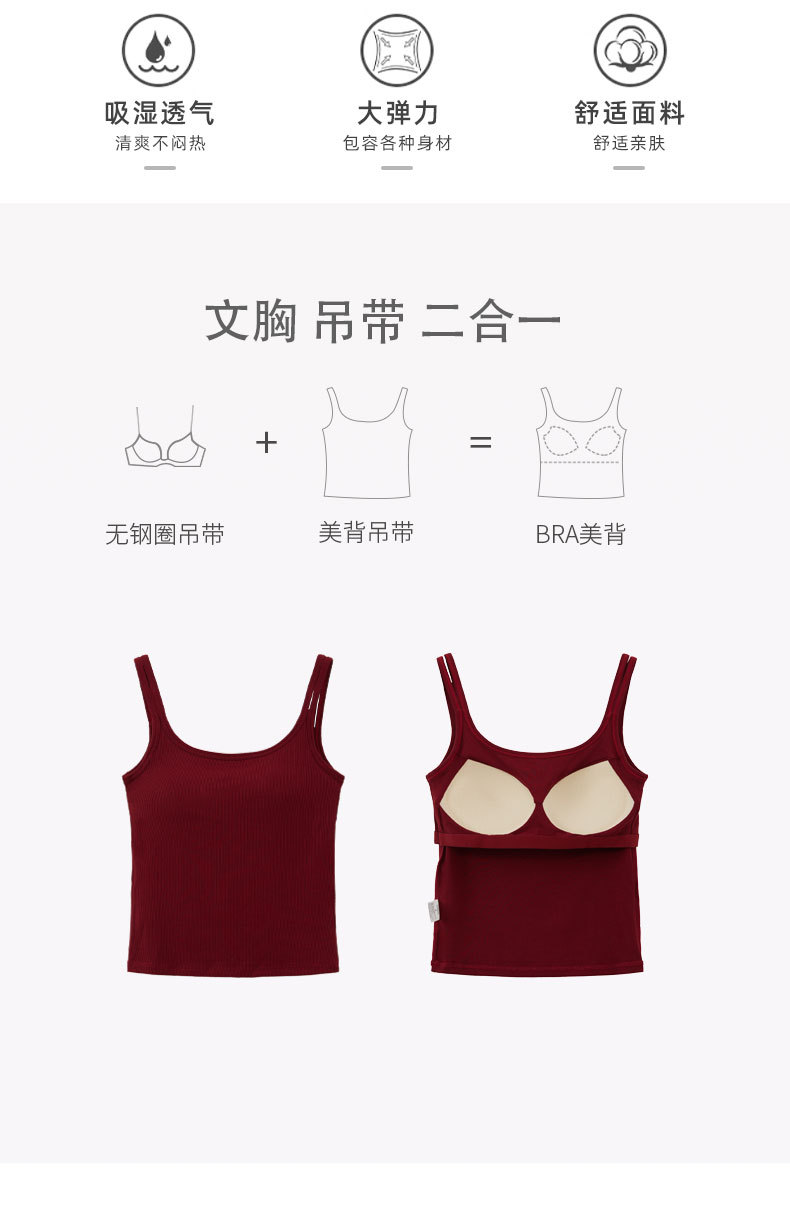 봄 여름 신상품 가슴 패드가 있는 프렌치 스타일 더블 숄더 스트랩 캐미솔 여성용 이너웨어 브라 일체형 아름다운 등 디자인 외출용 가능스토어 가기
