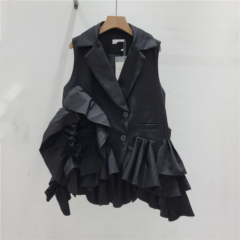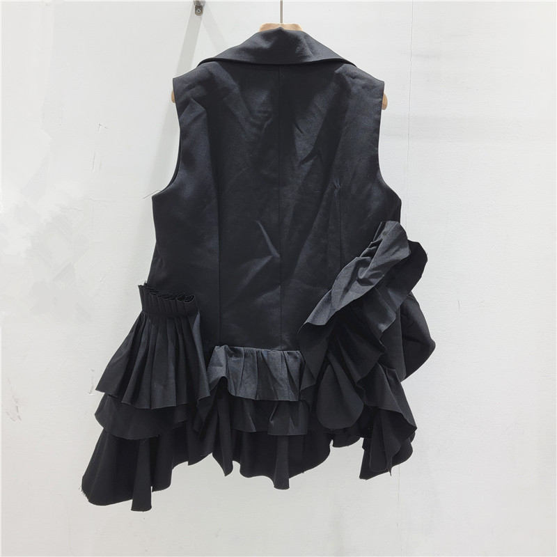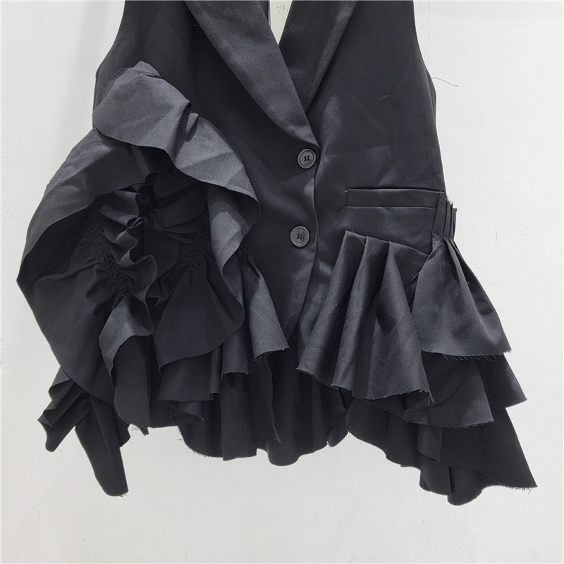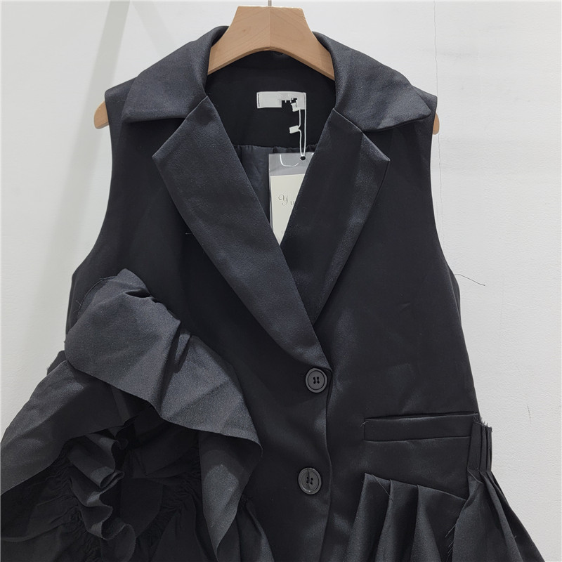 검은 양복 조끼 여성 접합 유럽 역 2024 봄과 가을 새로운 맞춤형 패션 조끼 외국 스타일 양복 조끼스토어 가기