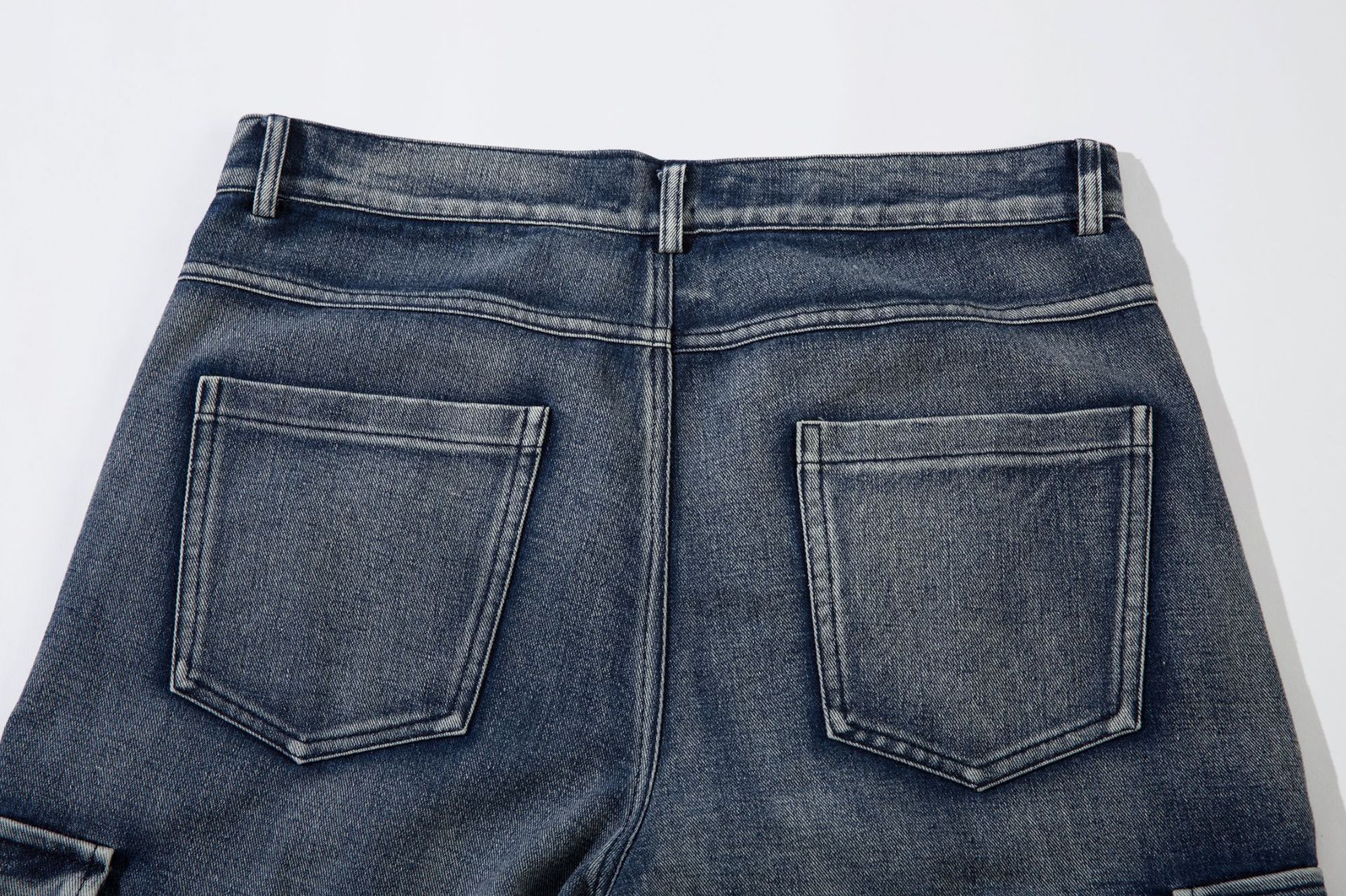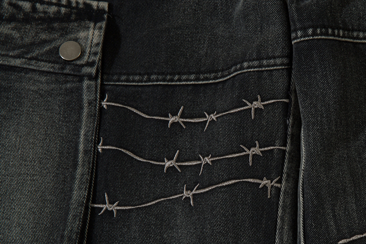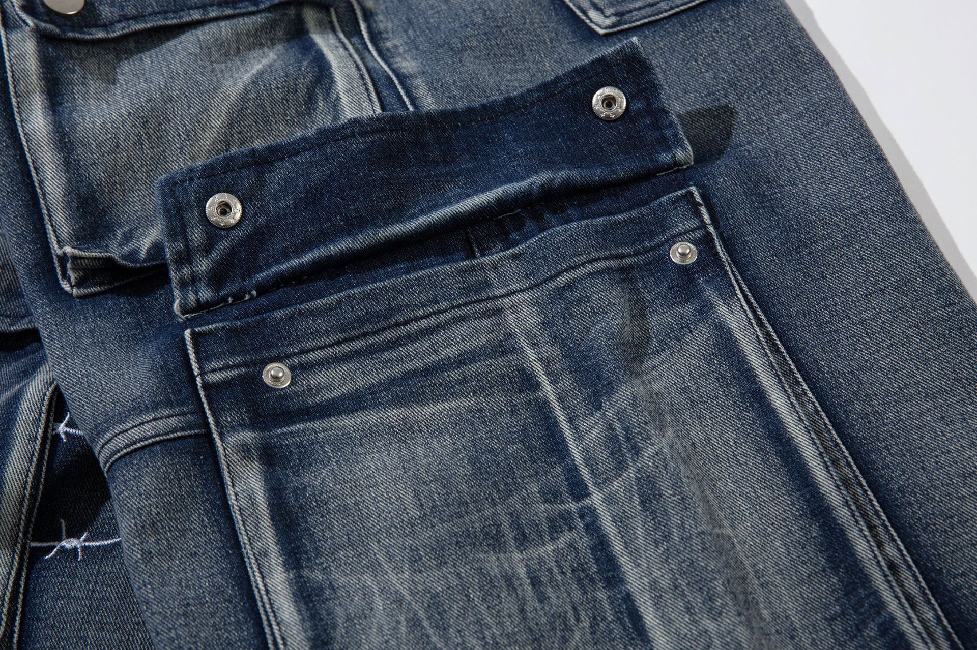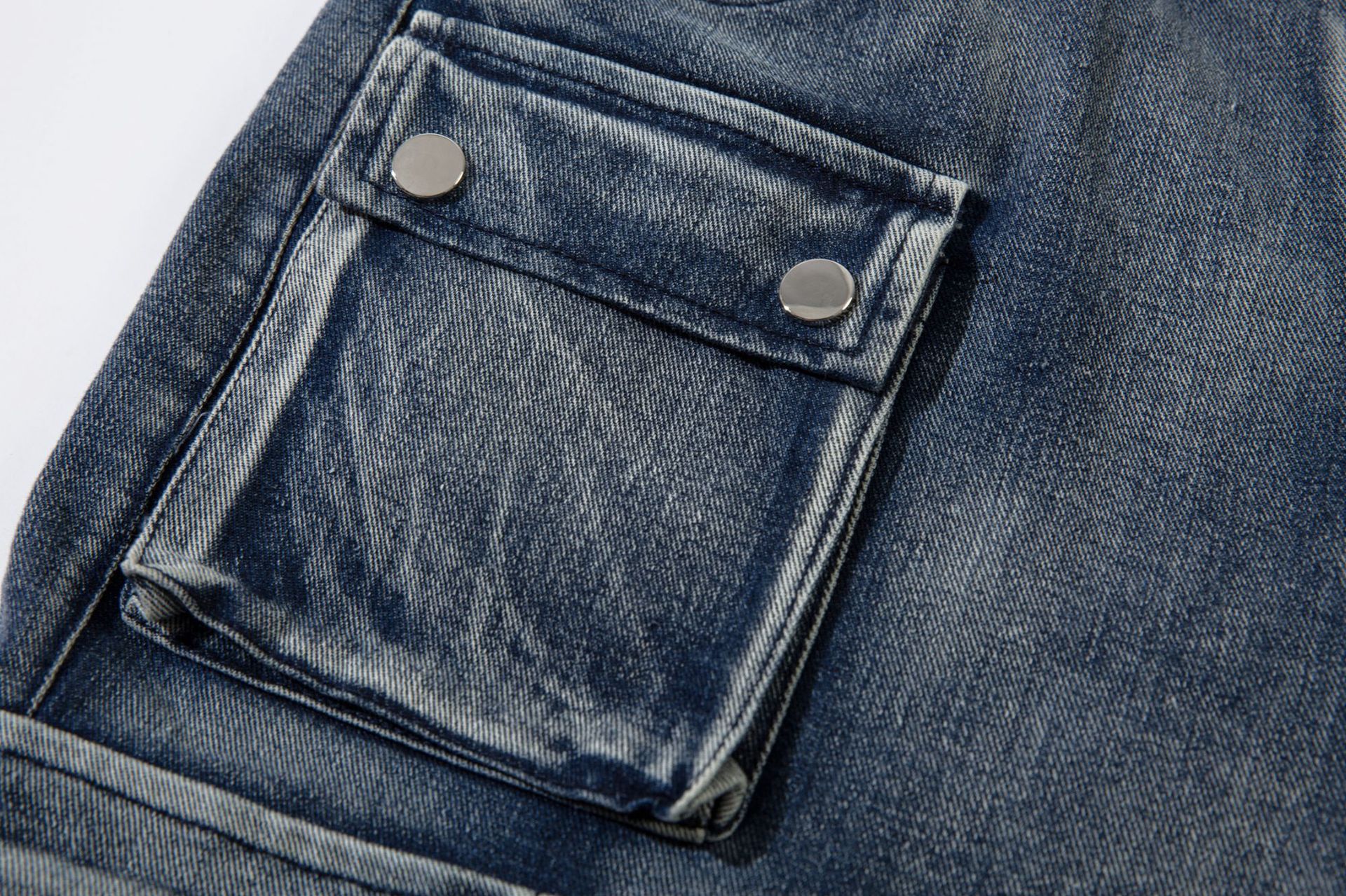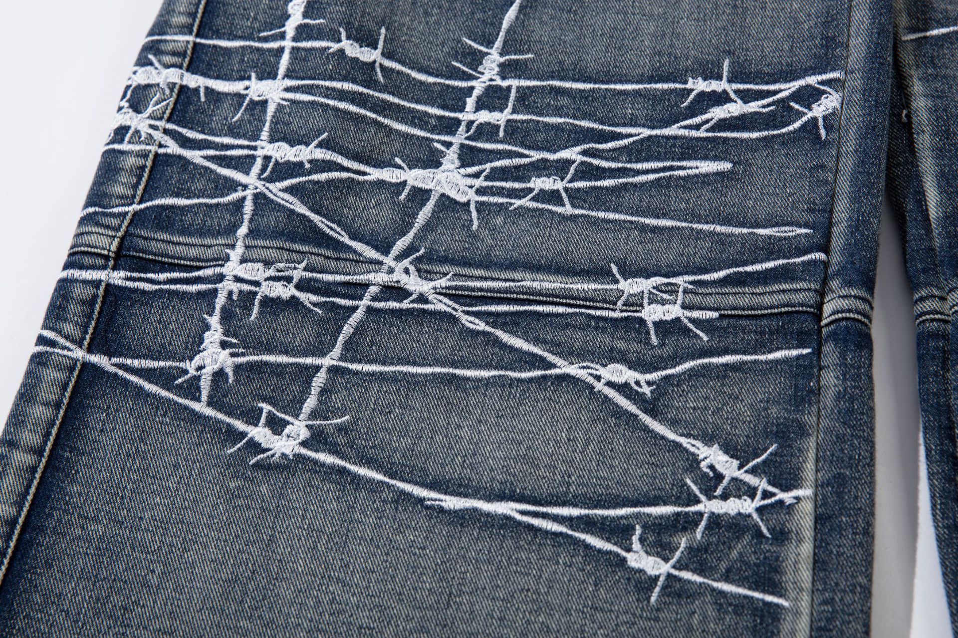 Jiayiku 트렌디 브랜드 아메리칸 레트로 워크 청바지 남성 하이 스트리트 VIBE 스타일 중공업 자수 루즈한 와이드 팬츠
