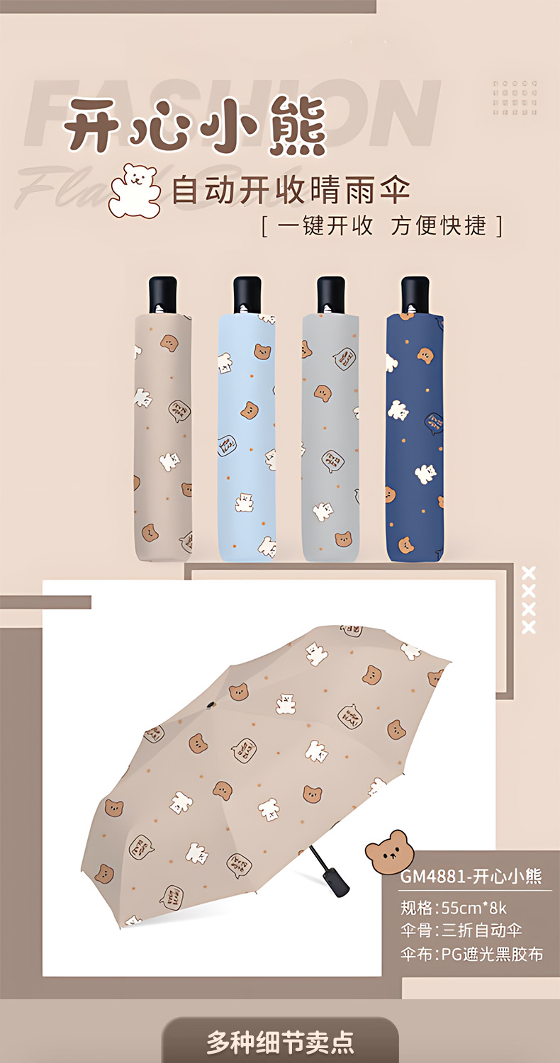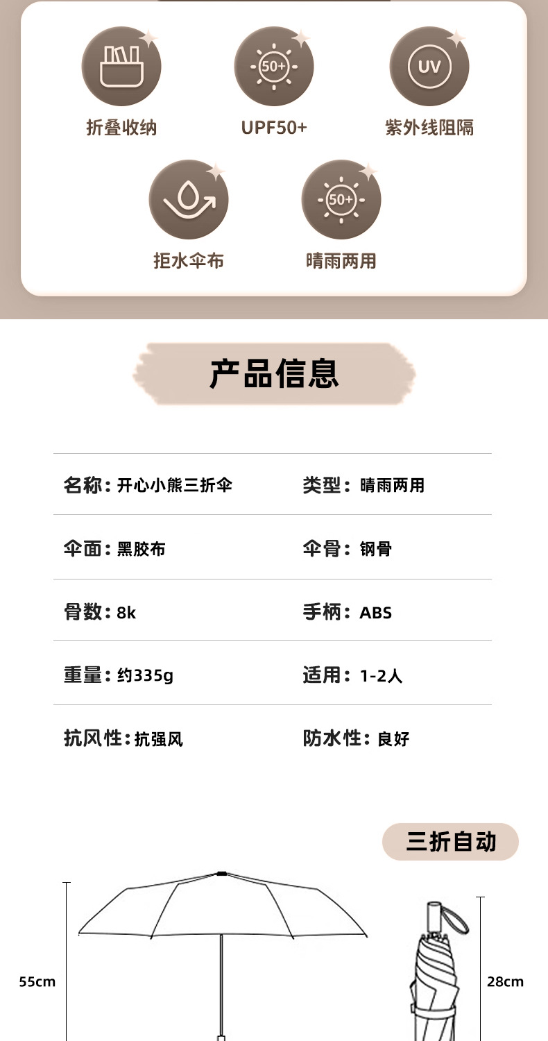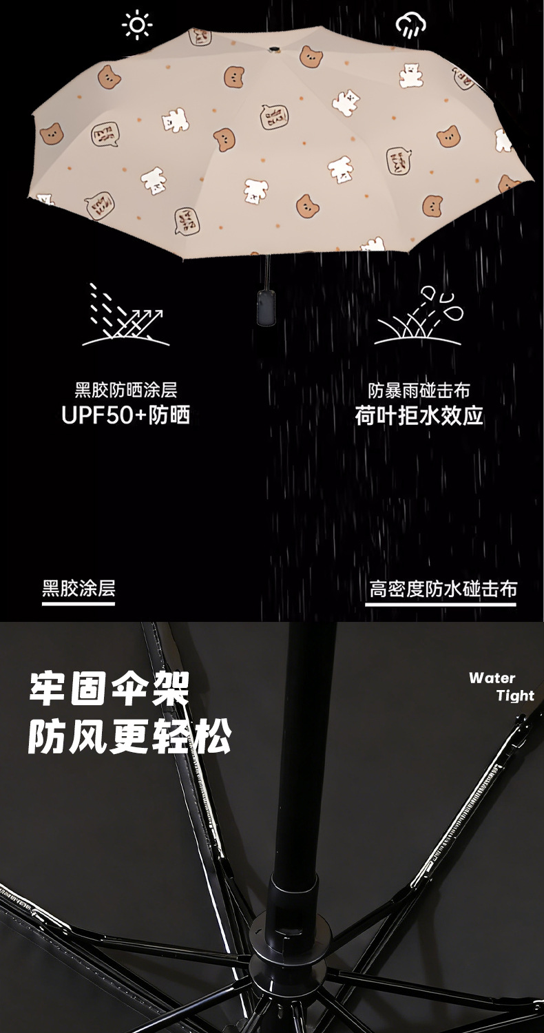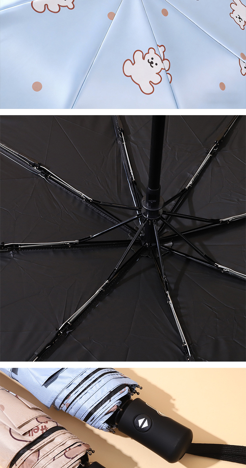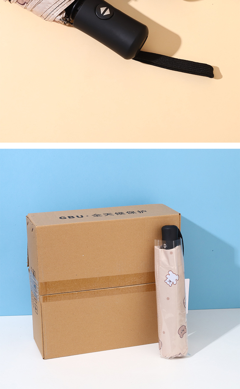 학생과 어린이를위한 따뜻한 강아지 전자동 화창한 우산 야외 휴대용 접이식 우산 자외선 방지 검은 태양 우산