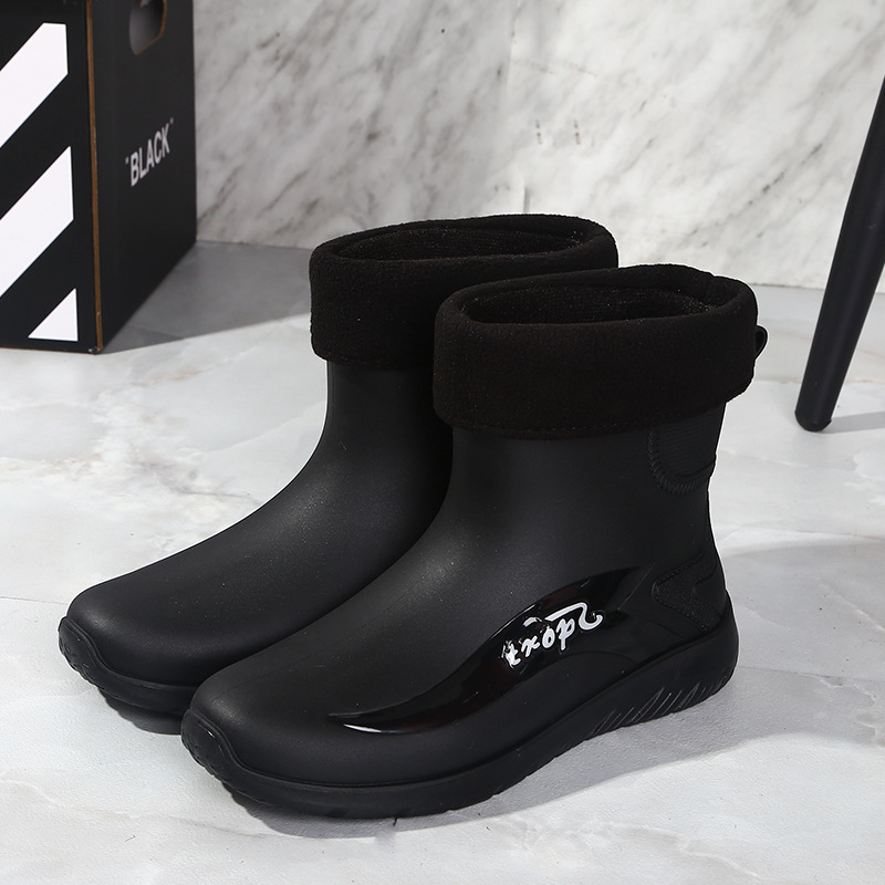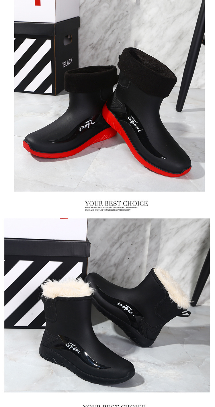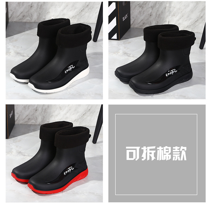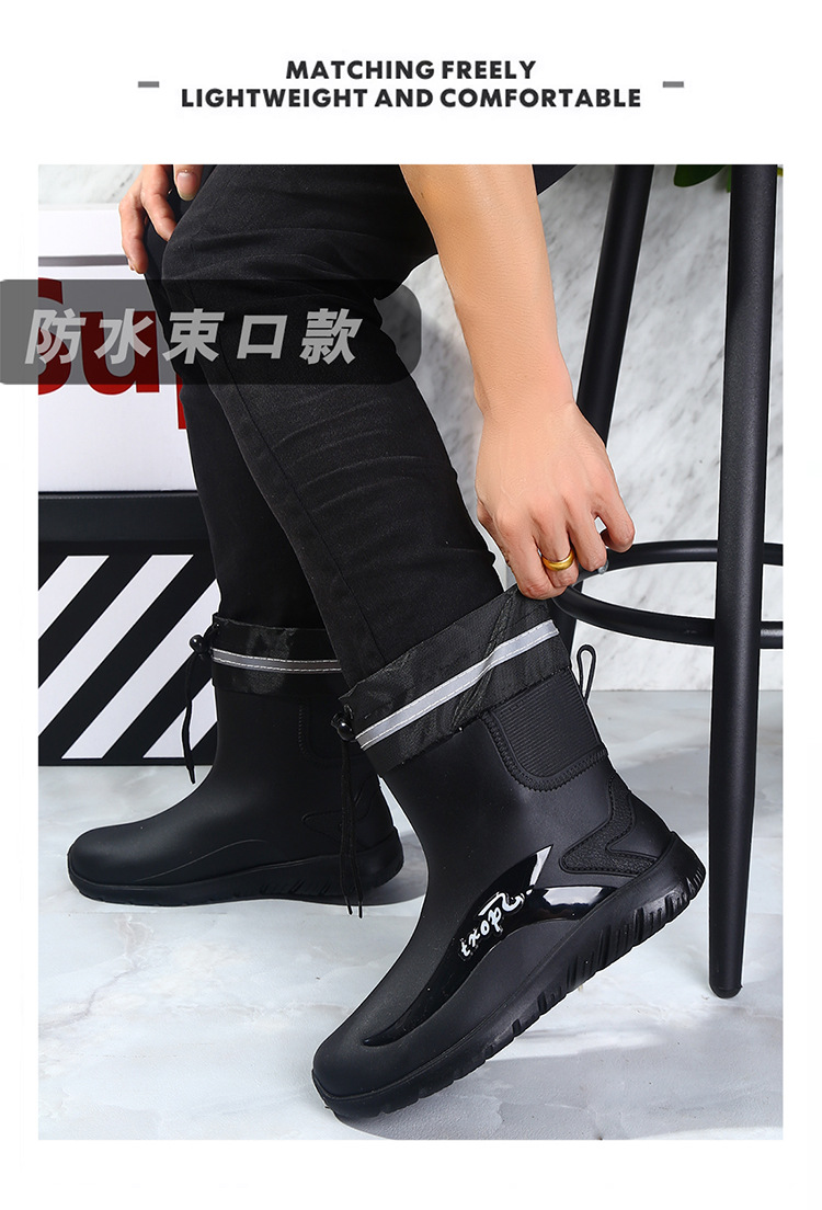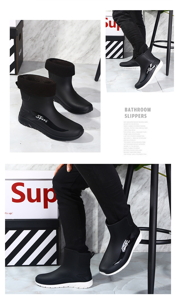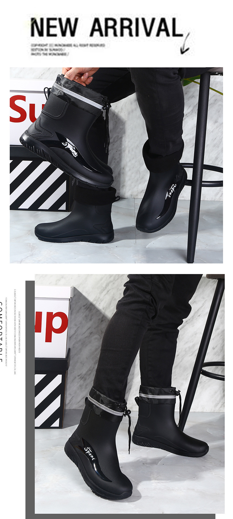 남성용 장화 미끄럼 방지 방수 유행 장화 기모 따뜻한 고무 신발 주방 낚시 중간 종아리 물 신발 오버 슈즈