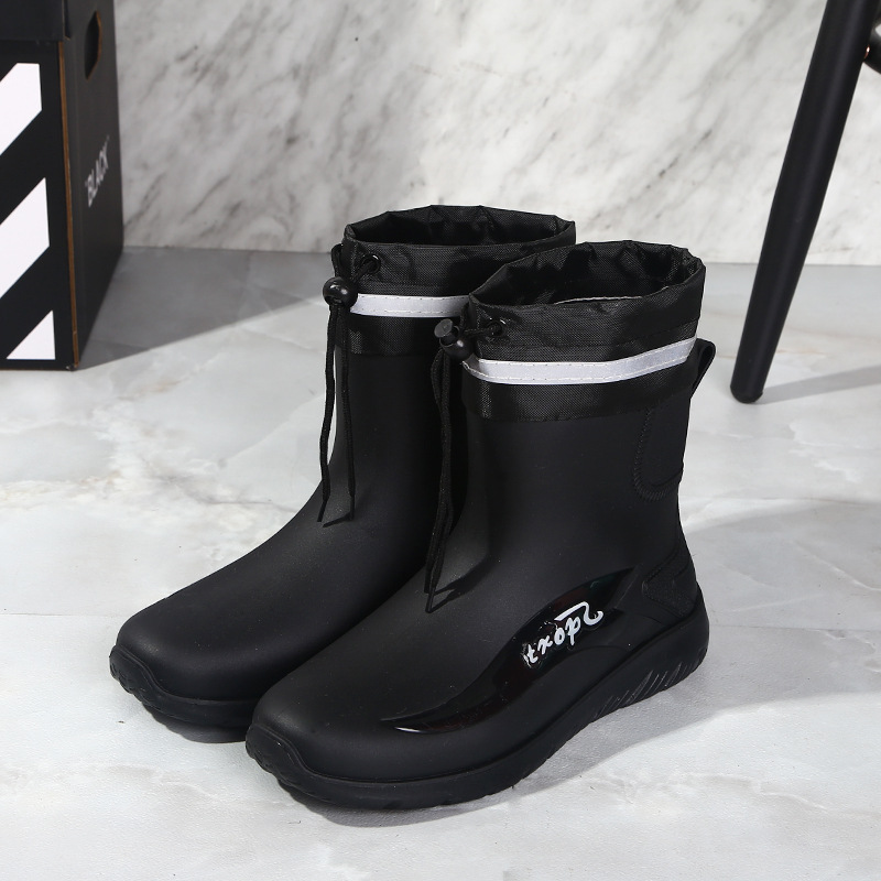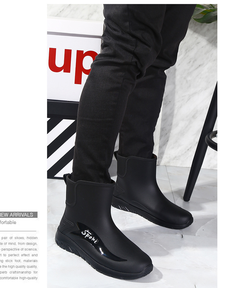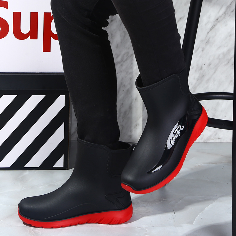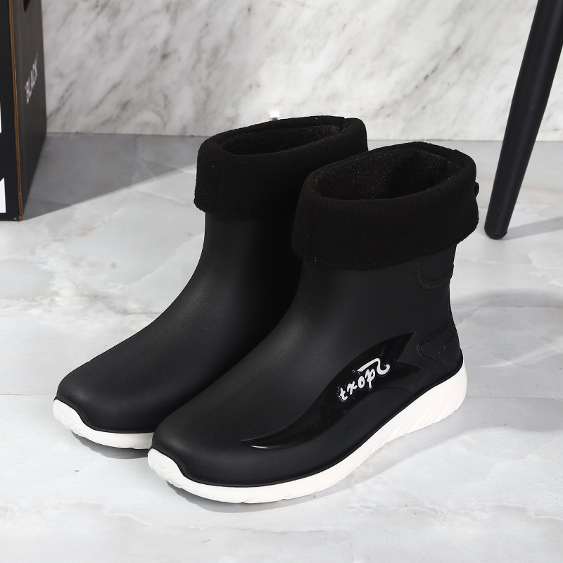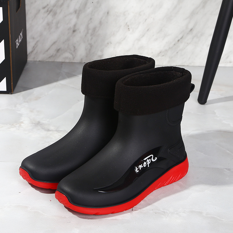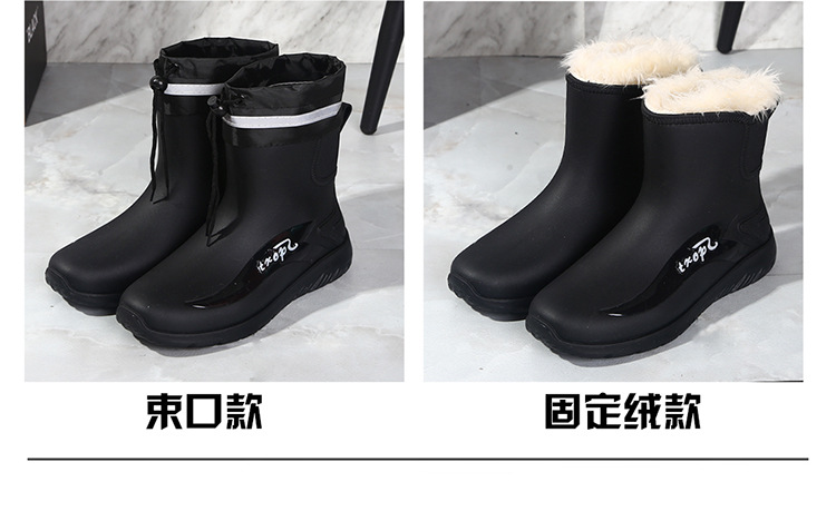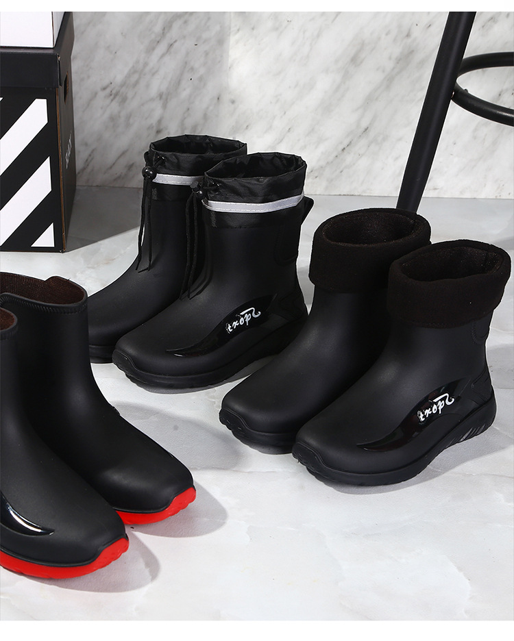 남성용 장화 미끄럼 방지 방수 유행 장화 기모 따뜻한 고무 신발 주방 낚시 중간 종아리 물 신발 오버 슈즈