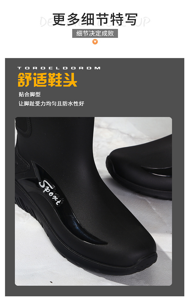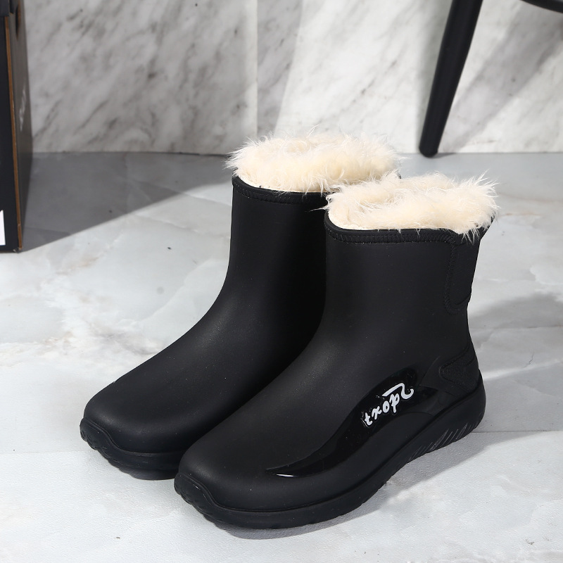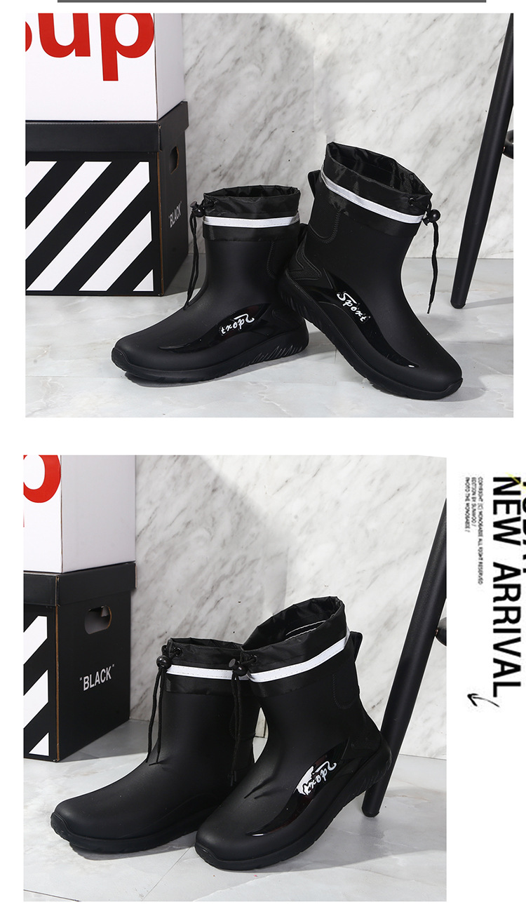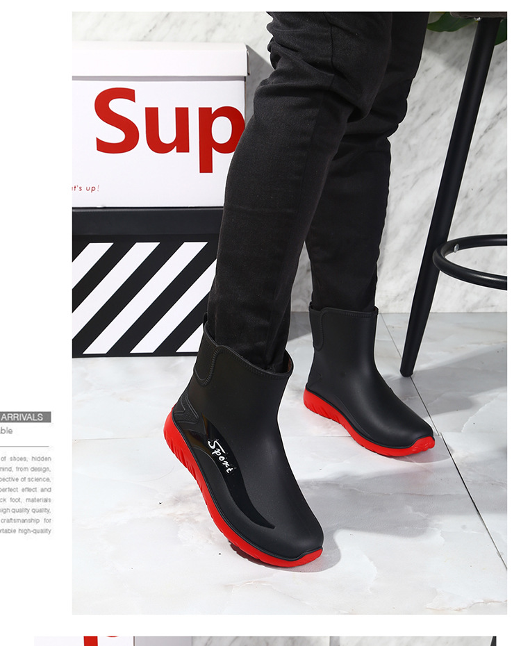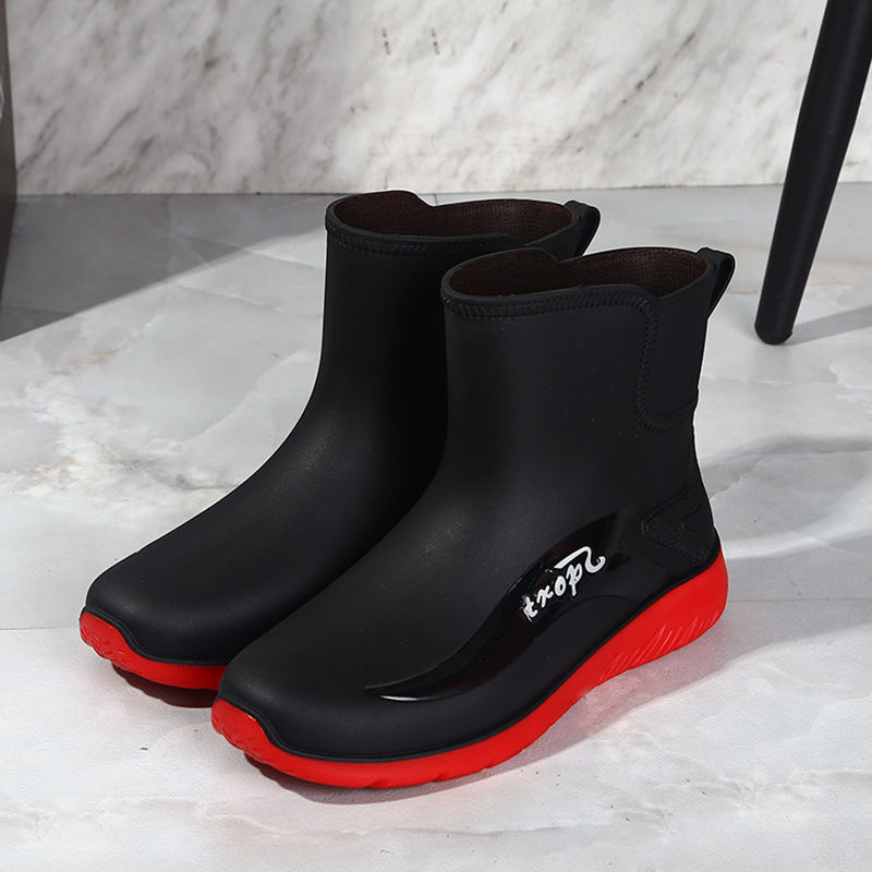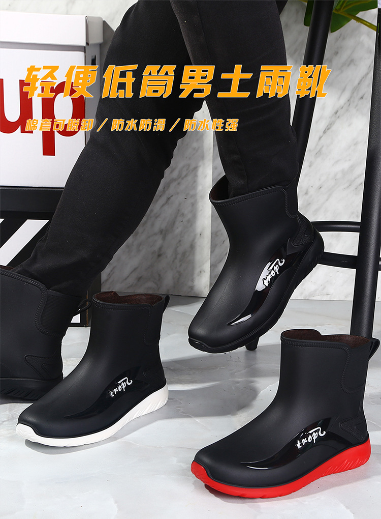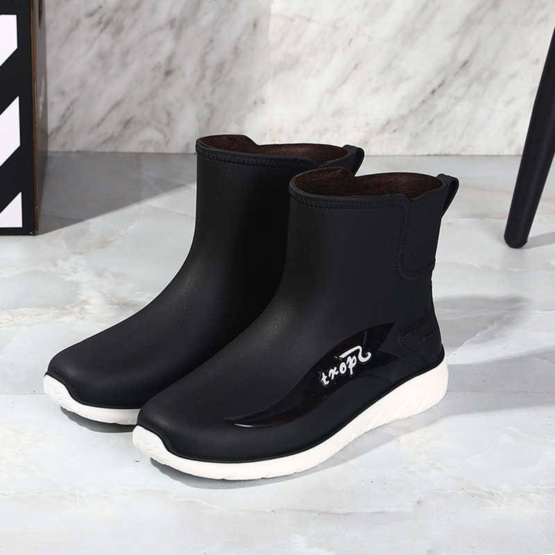남성용 장화 미끄럼 방지 방수 유행 장화 기모 따뜻한 고무 신발 주방 낚시 중간 종아리 물 신발 오버 슈즈