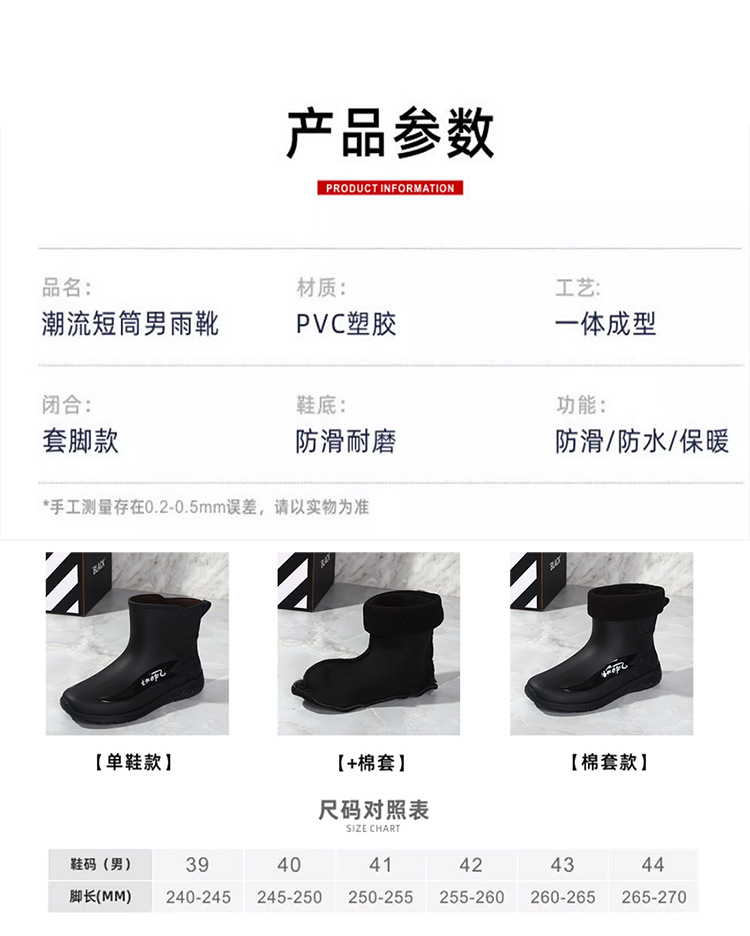 남성용 장화 미끄럼 방지 방수 유행 장화 기모 따뜻한 고무 신발 주방 낚시 중간 종아리 물 신발 오버 슈즈스토어 가기