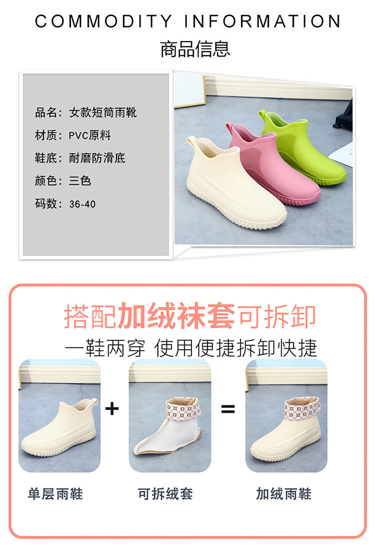 원피스 장화 여성용 미끄럼 방지 워터 슈즈 패션 성인 방수 신발 주방 로우 컷 작업 신발 도매 국경스토어 가기