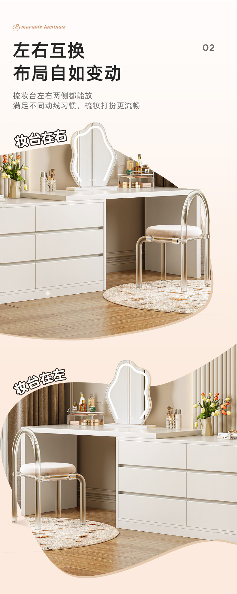 크림 스타일의 서랍장 옷장 통합 마스터 침실 보관 캐비닛 나무 드레싱 테이블 침대 캐비닛 룸 사물함
