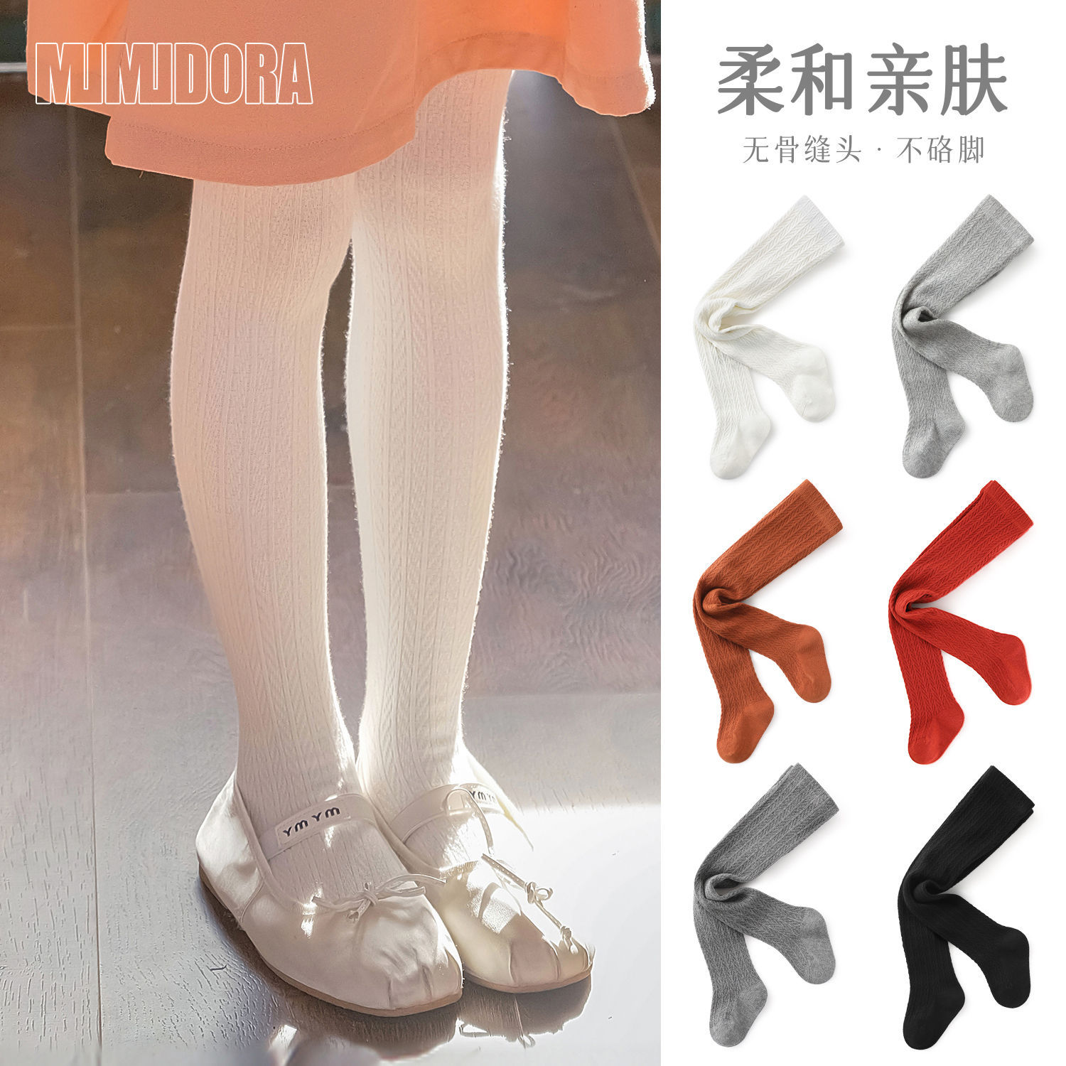 봄 어린이 팬티 스타킹 소녀 한국식 단색 레깅스면 팬티 스타킹 소녀 중 큰 어린이 레깅스를 빗질했습니다.