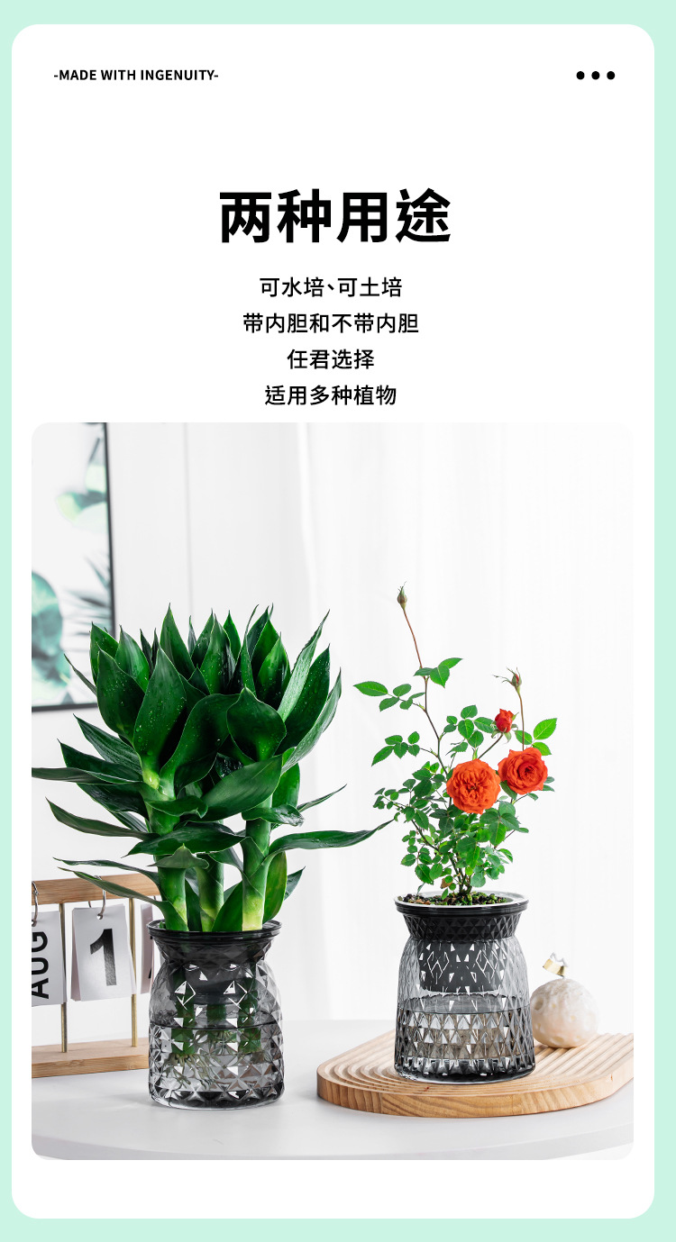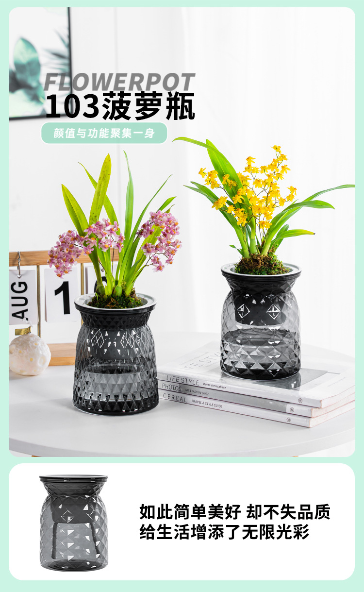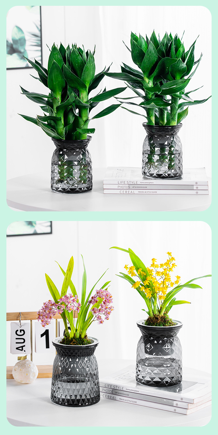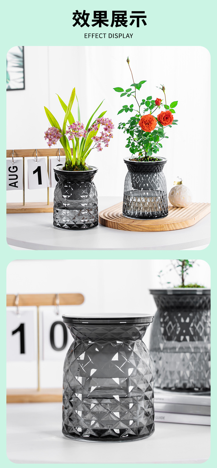 투명 모조 유리 수경 꽃병 자기 흡수성 게으른 꽃 냄비 토양 냄비 데스크탑 작은 냄비 관음 대나무 녹색 식물 화분스토어 가기