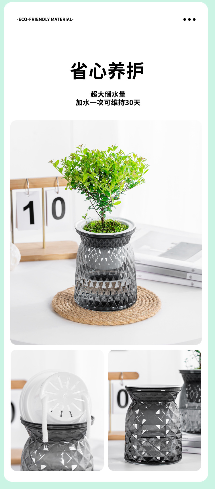 투명 모조 유리 수경 꽃병 자기 흡수성 게으른 꽃 냄비 토양 냄비 데스크탑 작은 냄비 관음 대나무 녹색 식물 화분