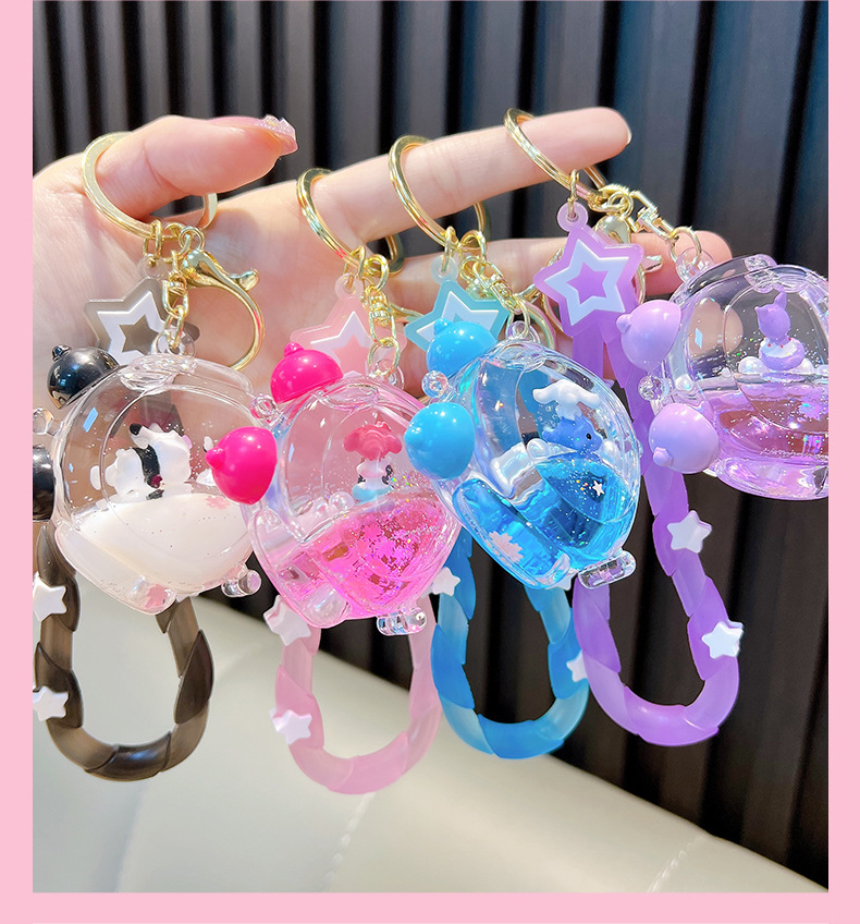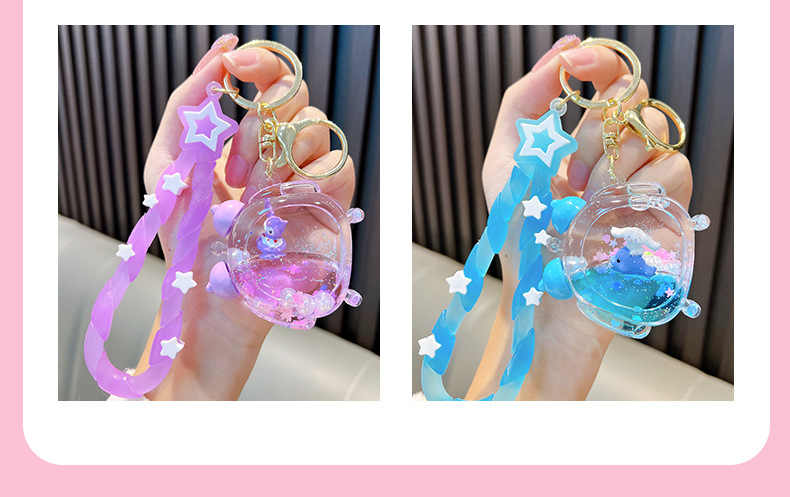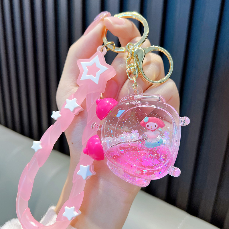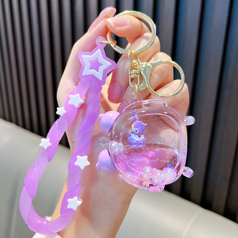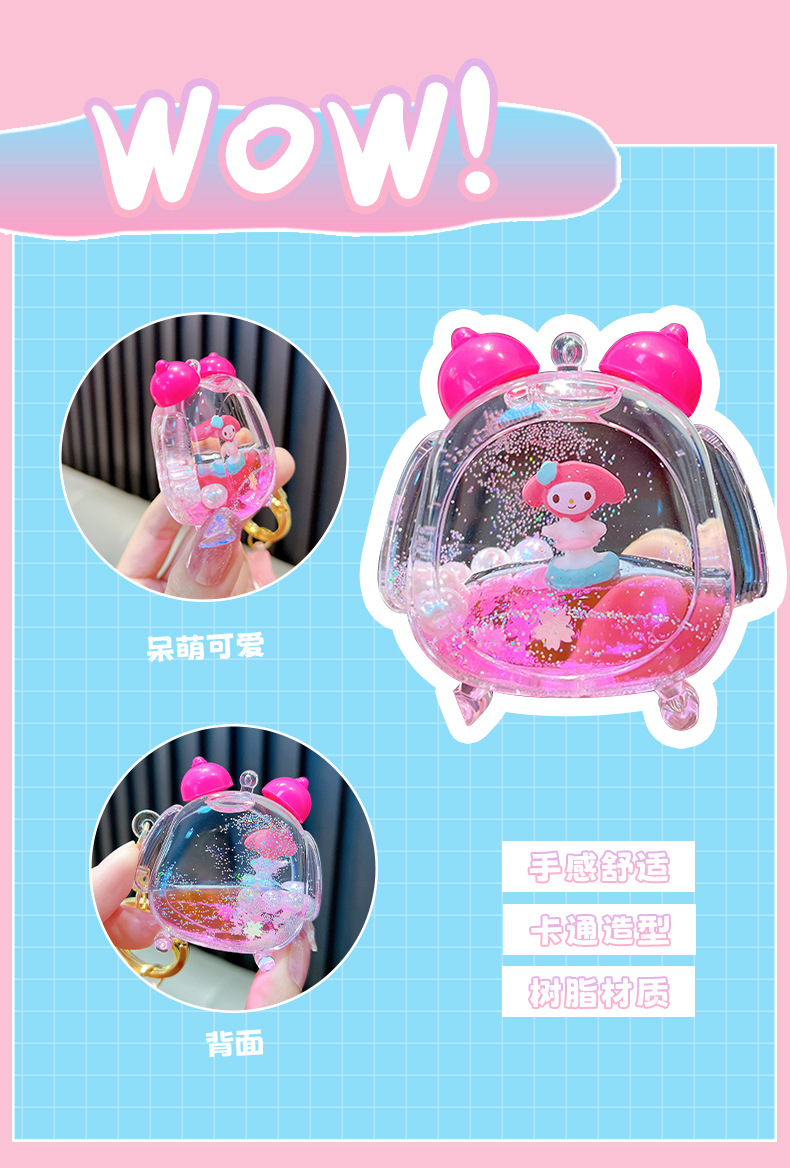 크리 에이 티브 오일 산리오 플로팅 퀵 샌드 병 알람 시계 키 체인 귀여운 자동차 키 체인 펜던트 선물 도매