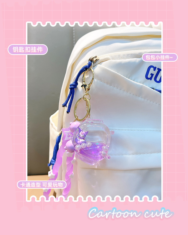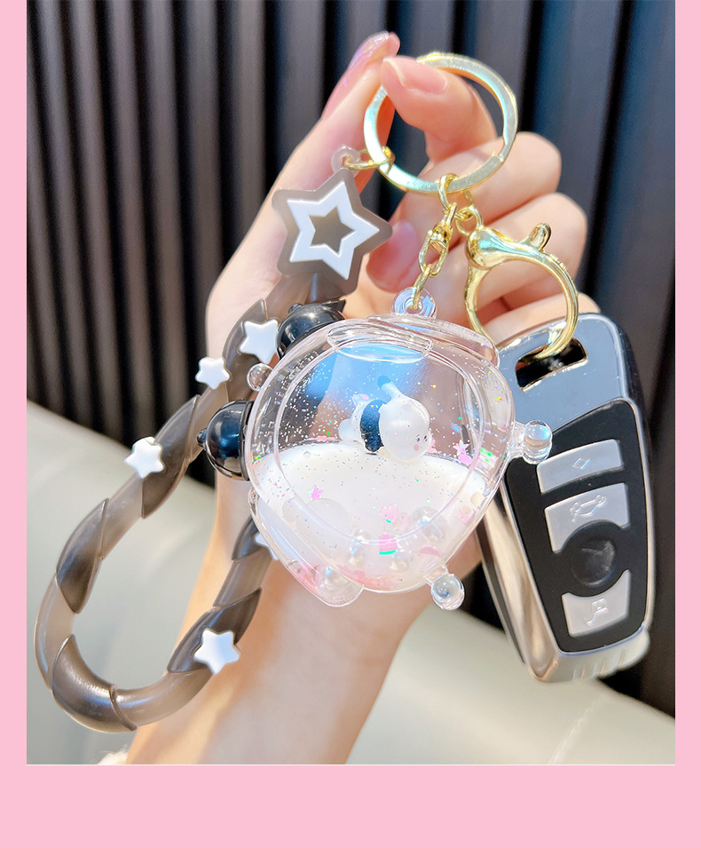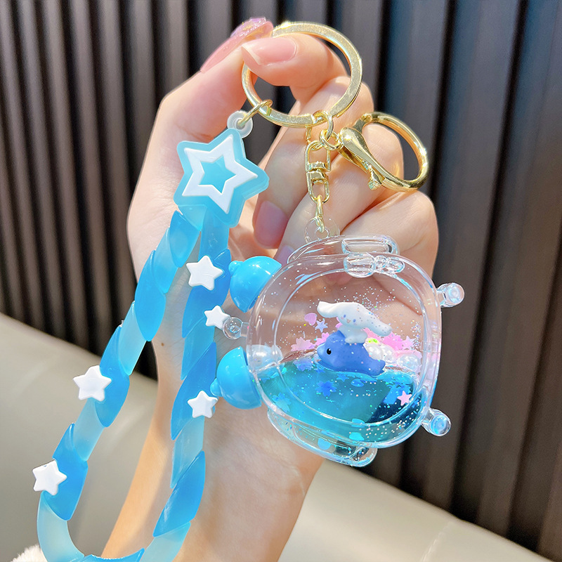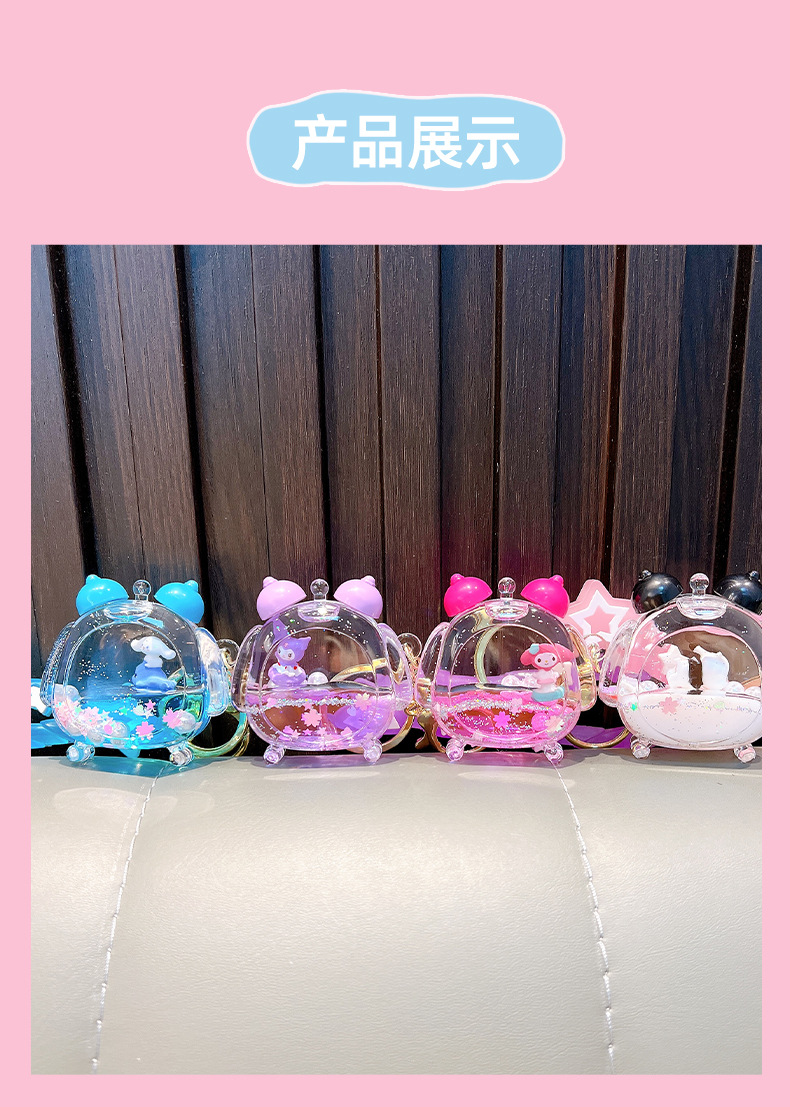 크리 에이 티브 오일 산리오 플로팅 퀵 샌드 병 알람 시계 키 체인 귀여운 자동차 키 체인 펜던트 선물 도매