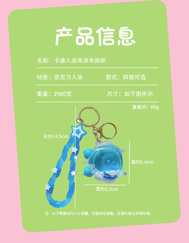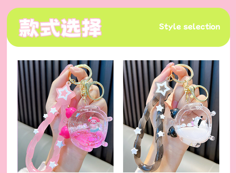 크리 에이 티브 오일 산리오 플로팅 퀵 샌드 병 알람 시계 키 체인 귀여운 자동차 키 체인 펜던트 선물 도매스토어 가기