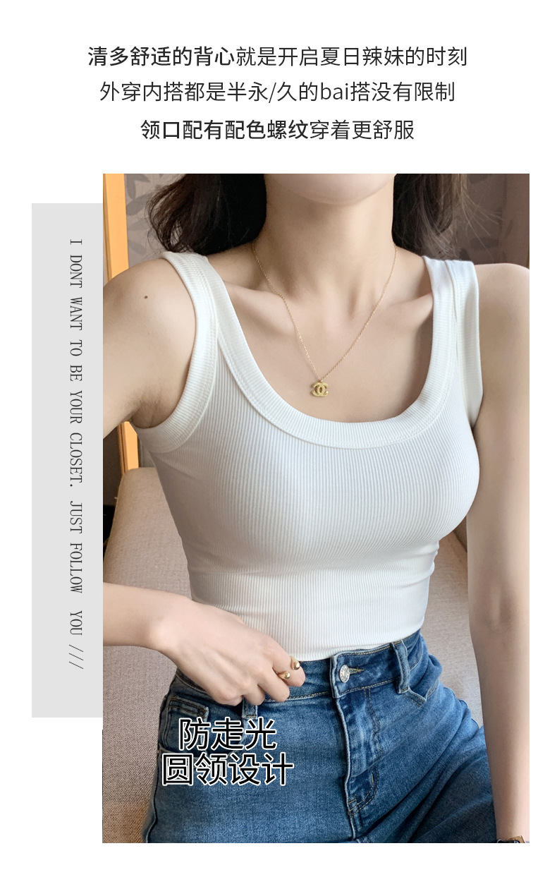 인기있는 캐미솔 여성용 내부 및 외부 민소매 바닥 셔츠 여름 실 조끼 여성용 슬림 핏 유방 커버 탑스토어 가기