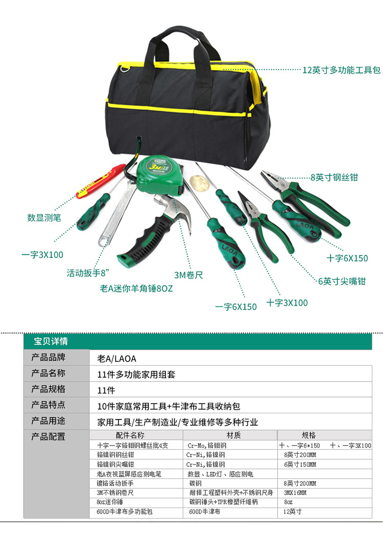 LAOA 11 피스 키트 홈 수리 하드웨어 도구 세트 LA101203