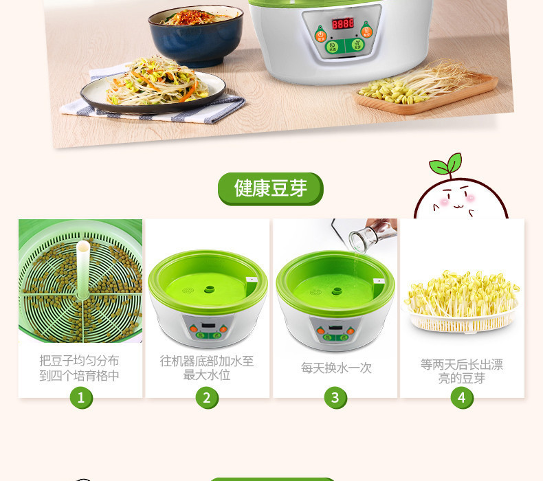 지능형 콩 새싹 기계 가정용 자동 대용량 생 콩 새싹 배럴 녹색 콩 새싹 인공물 작은 발아 냄비스토어 가기
