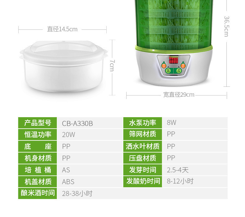 지능형 콩 새싹 기계 가정용 자동 대용량 생 콩 새싹 배럴 녹색 콩 새싹 인공물 작은 발아 냄비