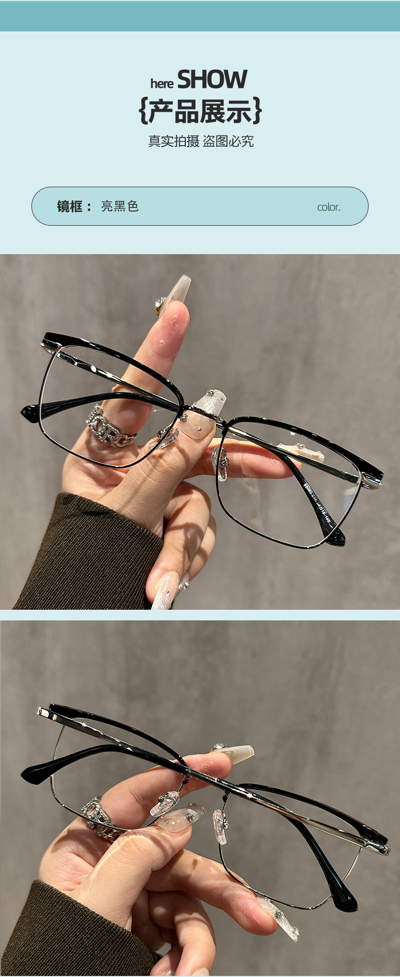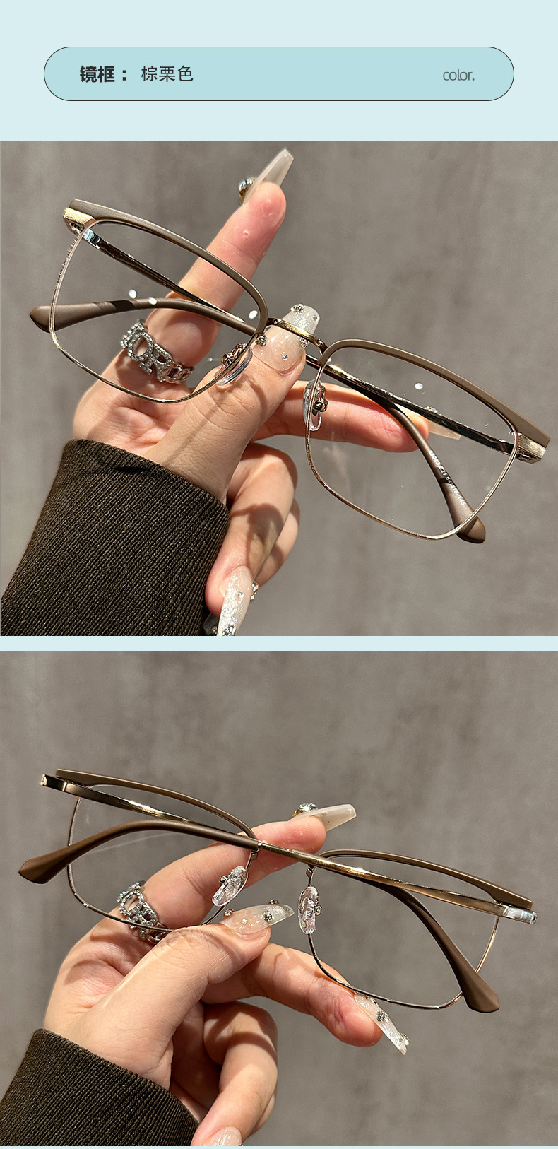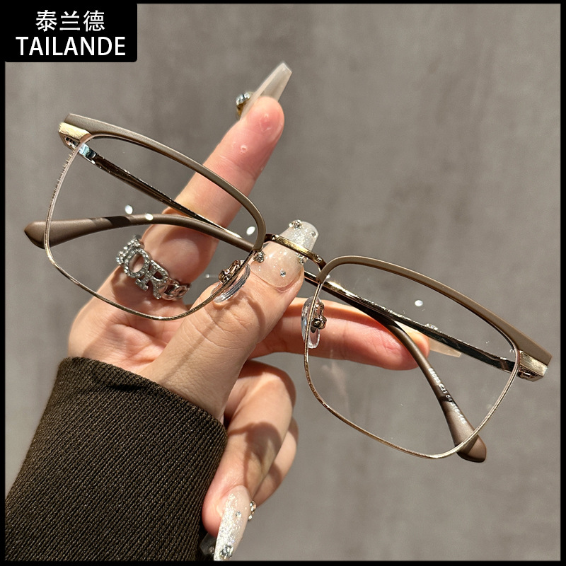 68093 레트로 모던 메탈 하프 프레임 비즈니스 근시 안경테 여성 남성 가을 겨울 브라운 밀크색 다용도 무도수 안경스토어 가기
