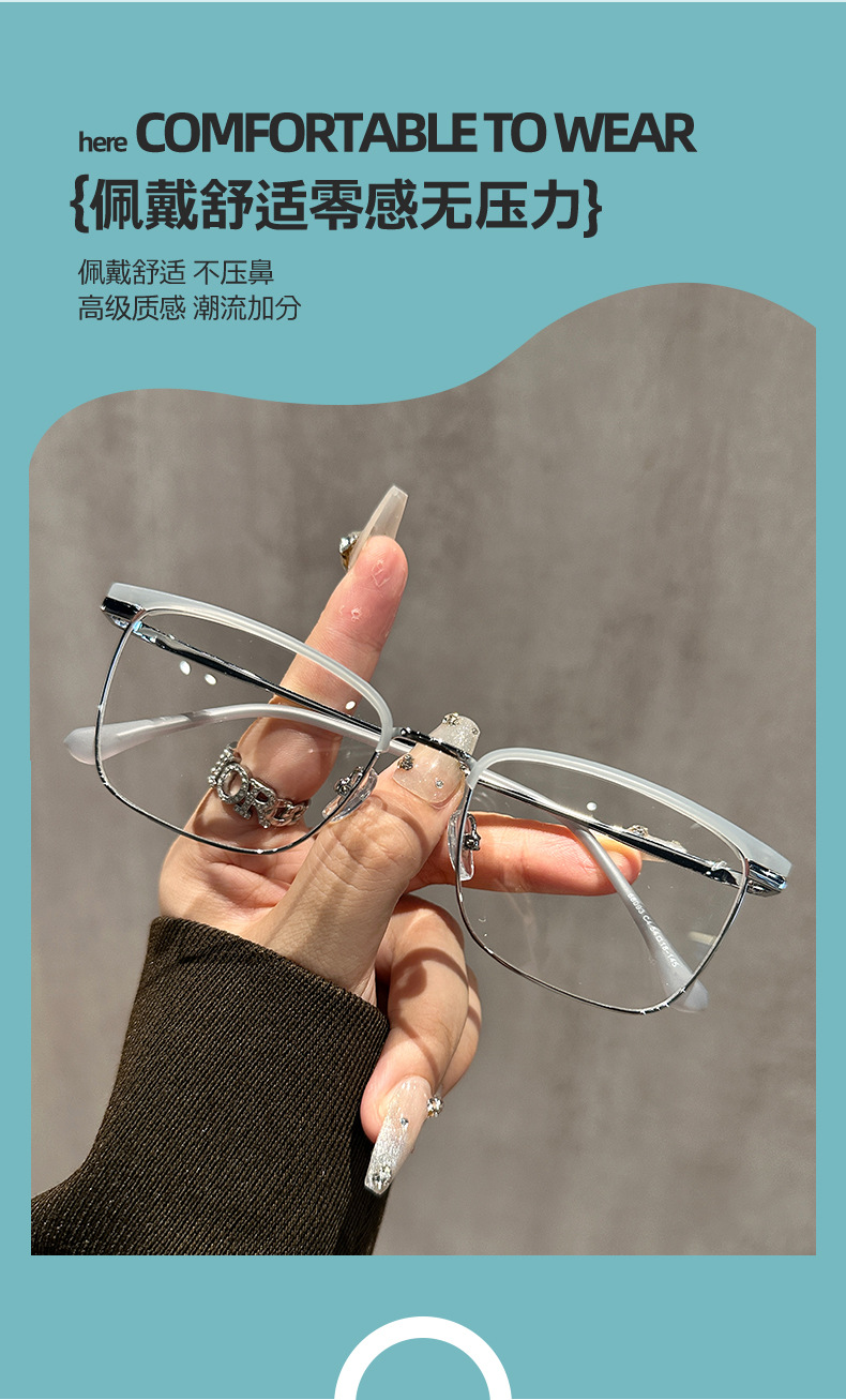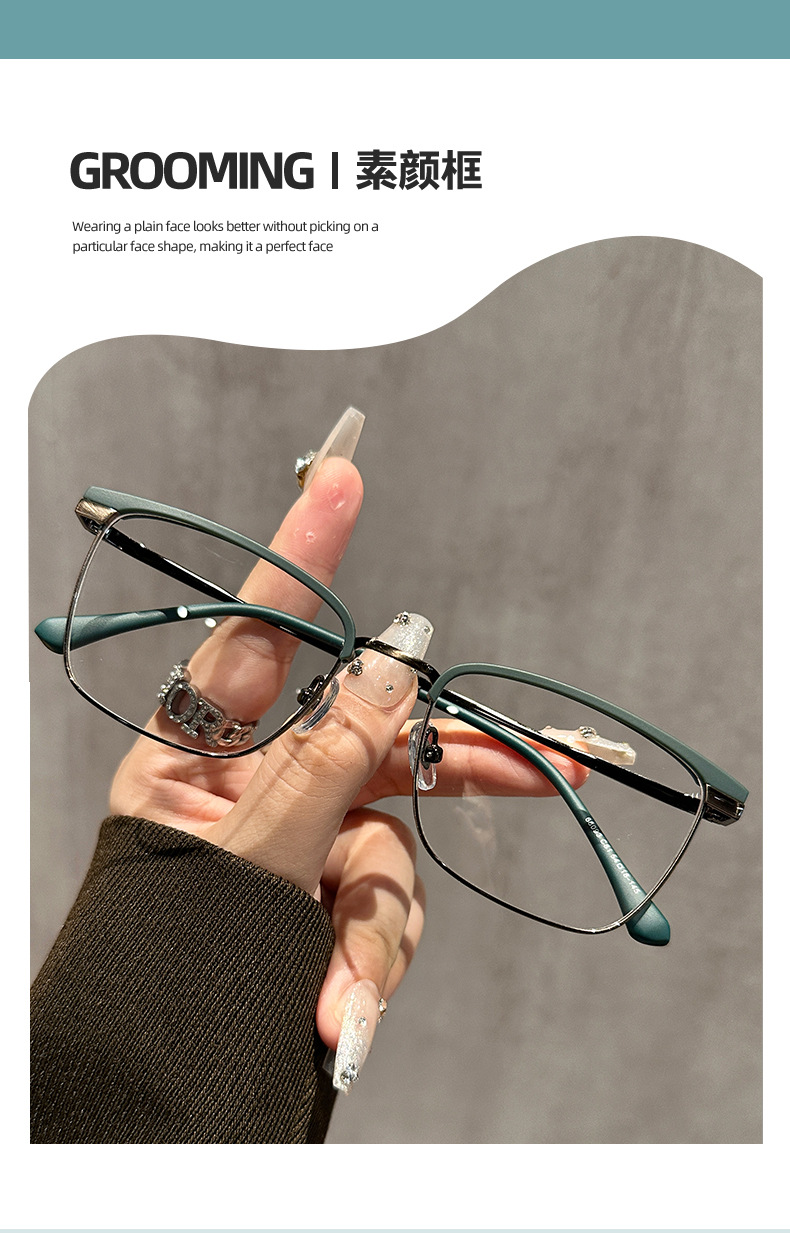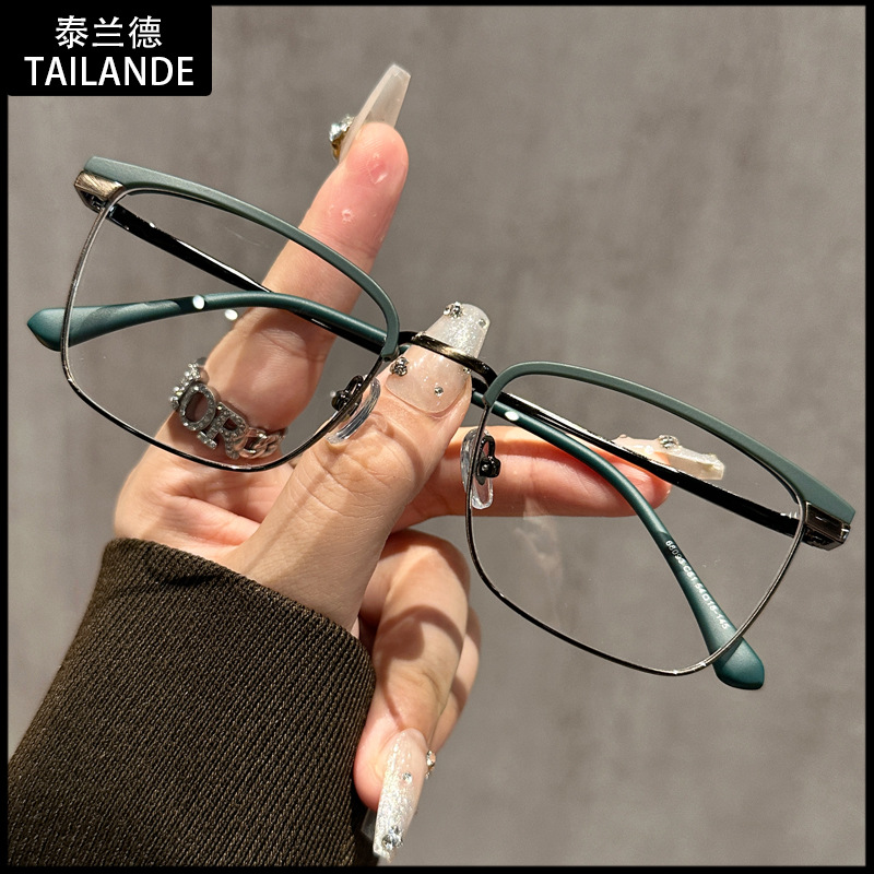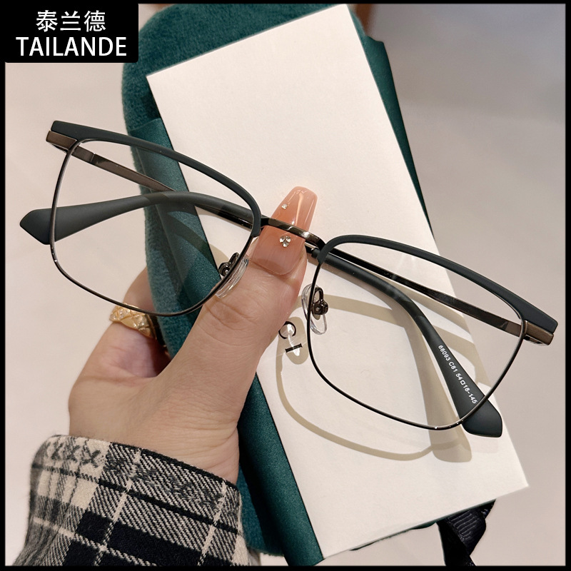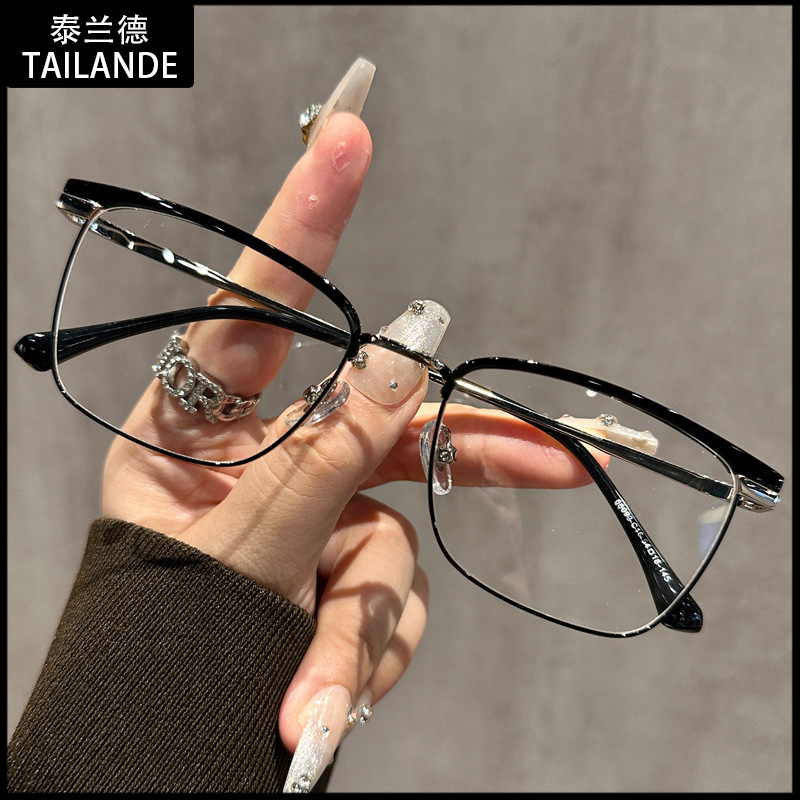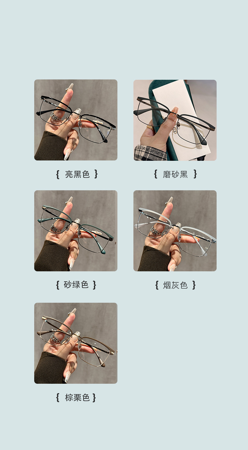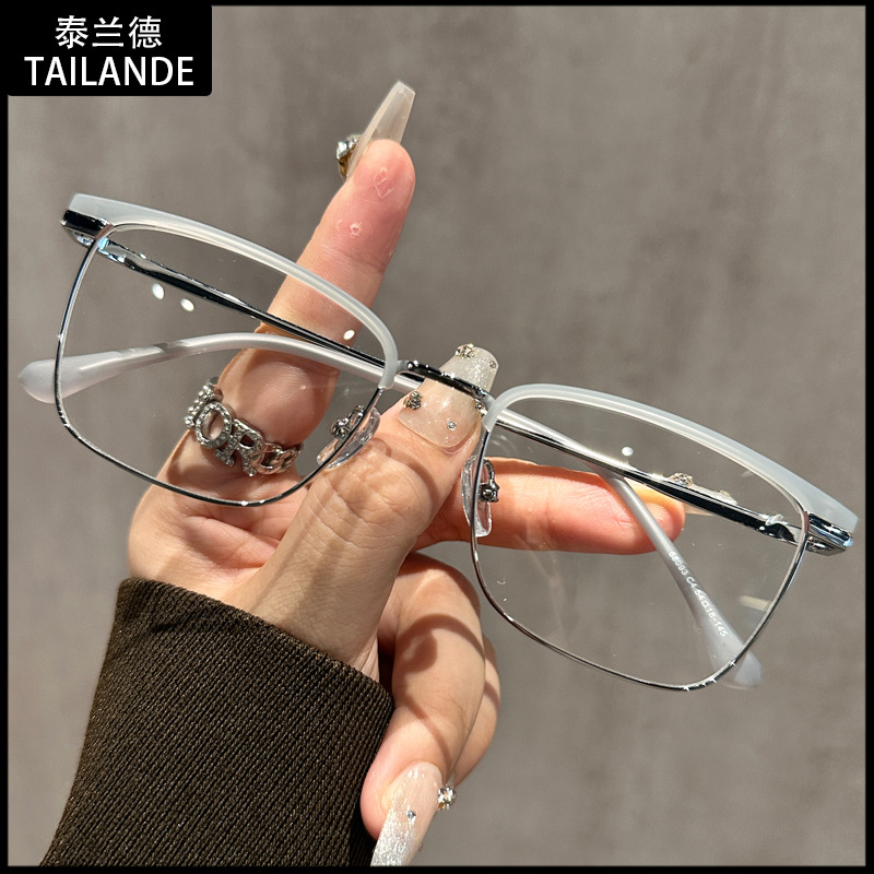 68093 레트로 모던 메탈 하프 프레임 비즈니스 근시 안경테 여성 남성 가을 겨울 브라운 밀크색 다용도 무도수 안경