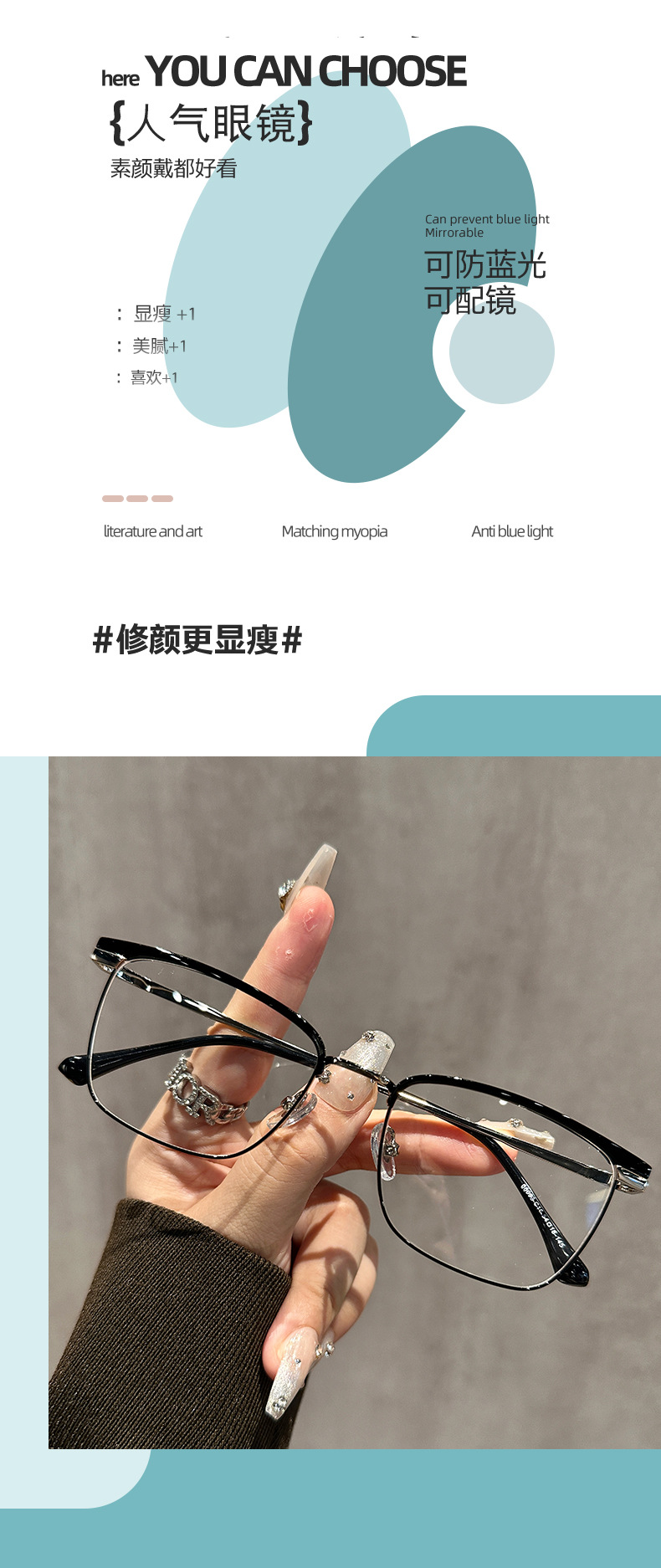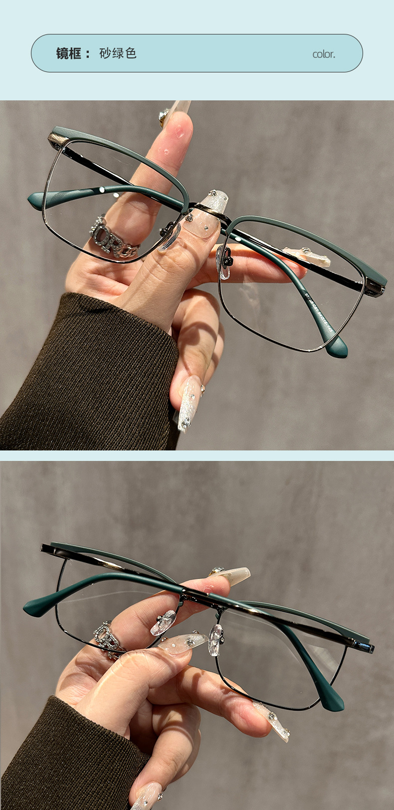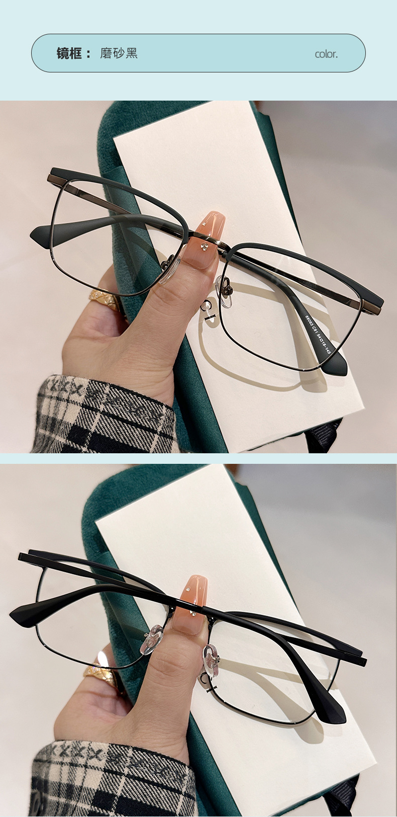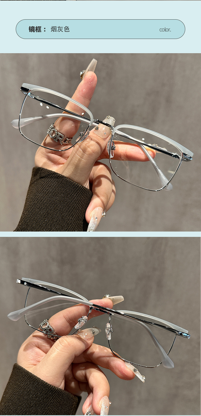 68093 레트로 모던 메탈 하프 프레임 비즈니스 근시 안경테 여성 남성 가을 겨울 브라운 밀크색 다용도 무도수 안경