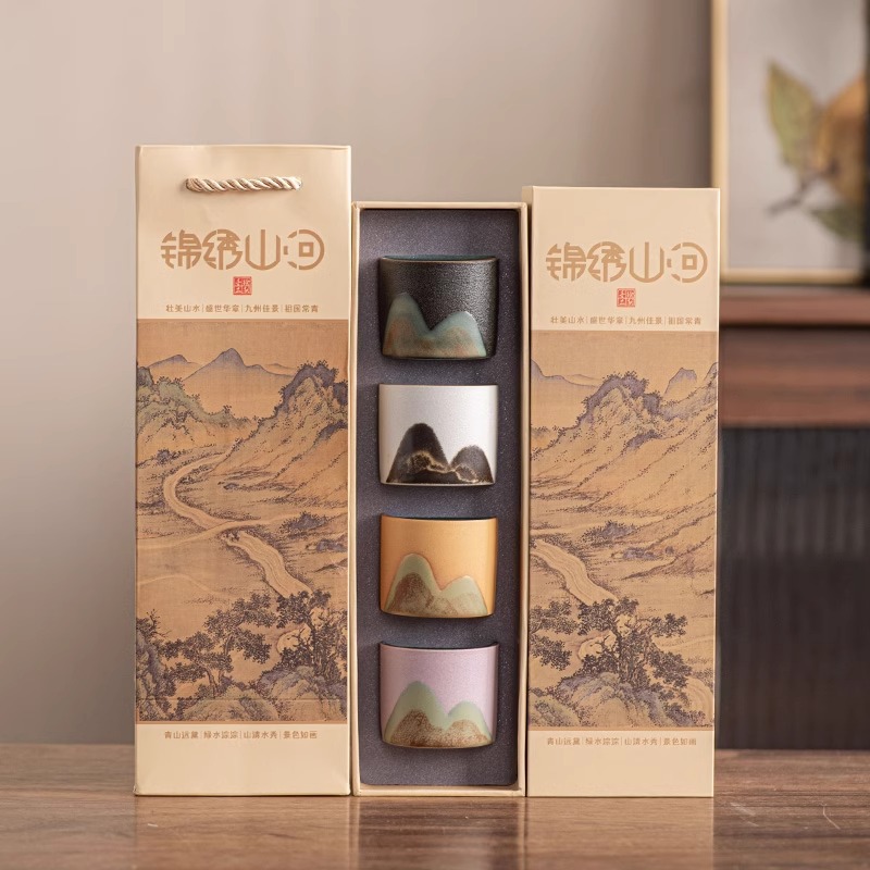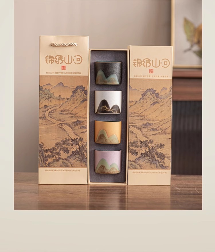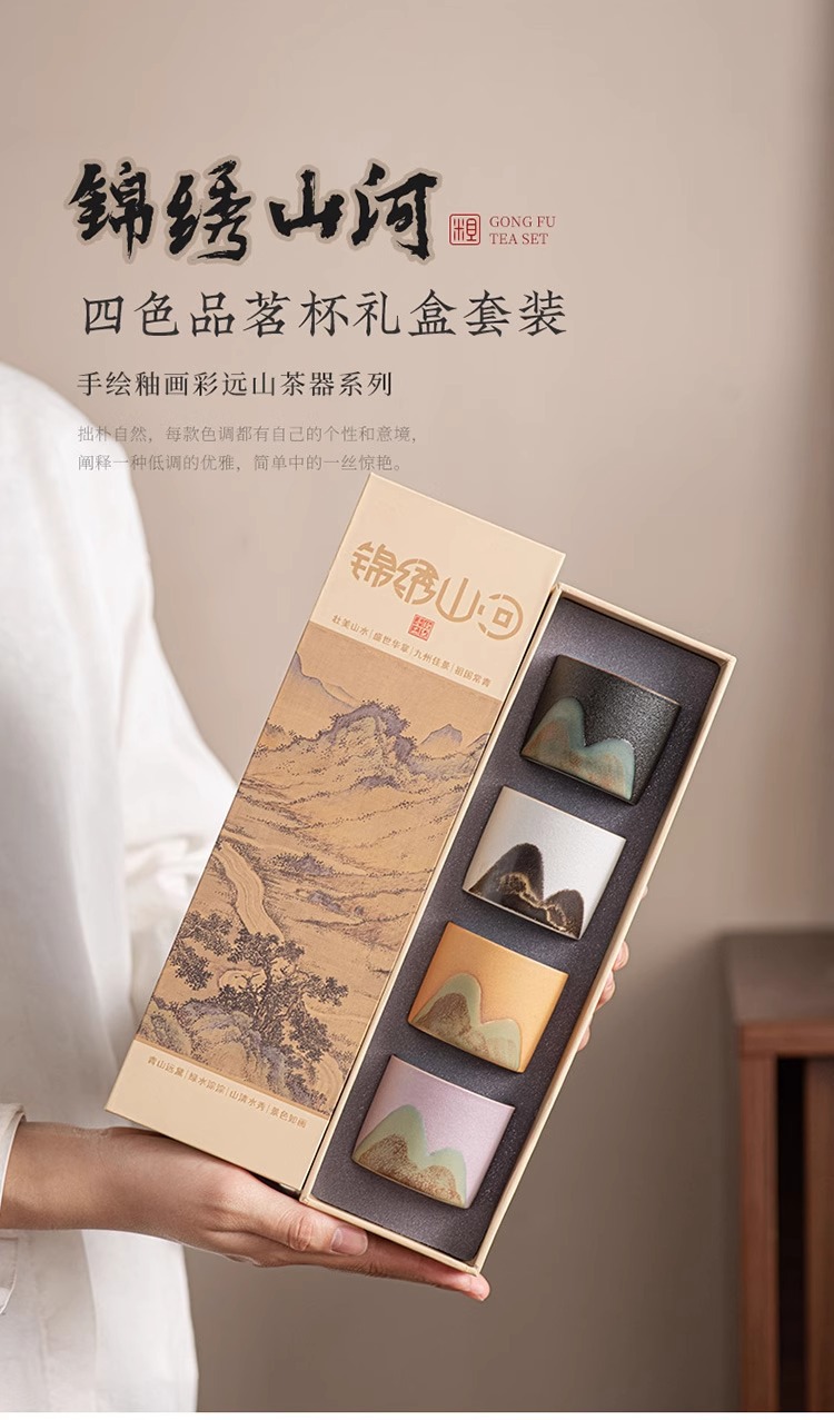 • 화려한 산과 강 - 4색 찻잔 선물 상자 세트