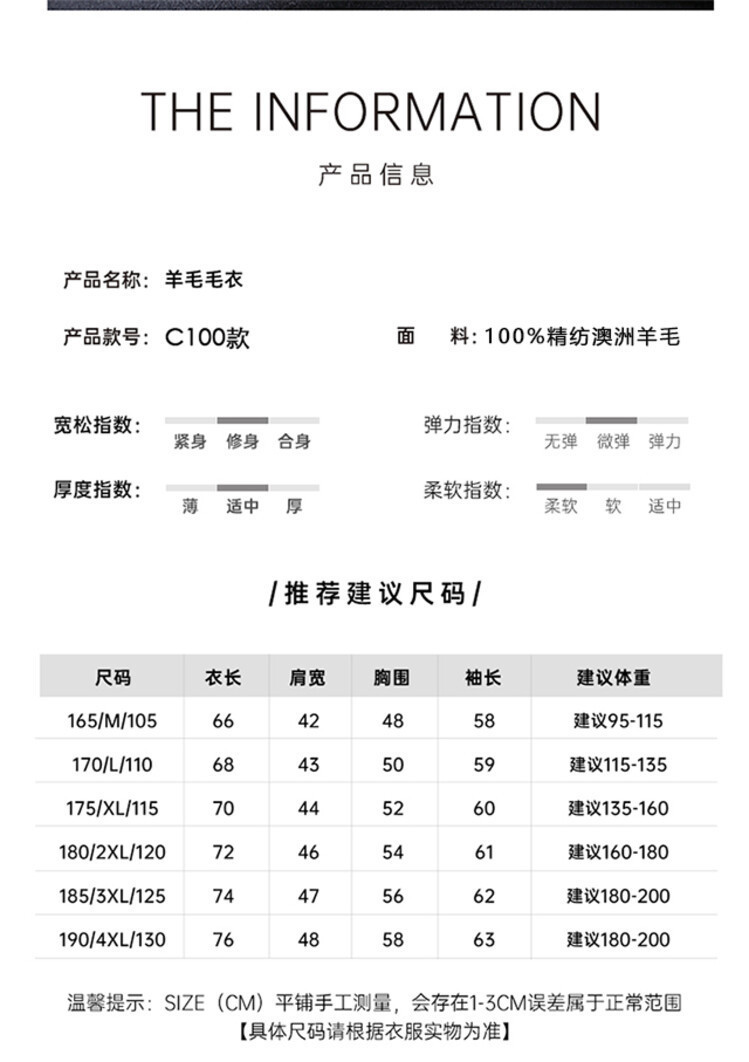 【毛衣】【精纺美丽若羊毛】【均260克】可机洗 不起球 不掉色