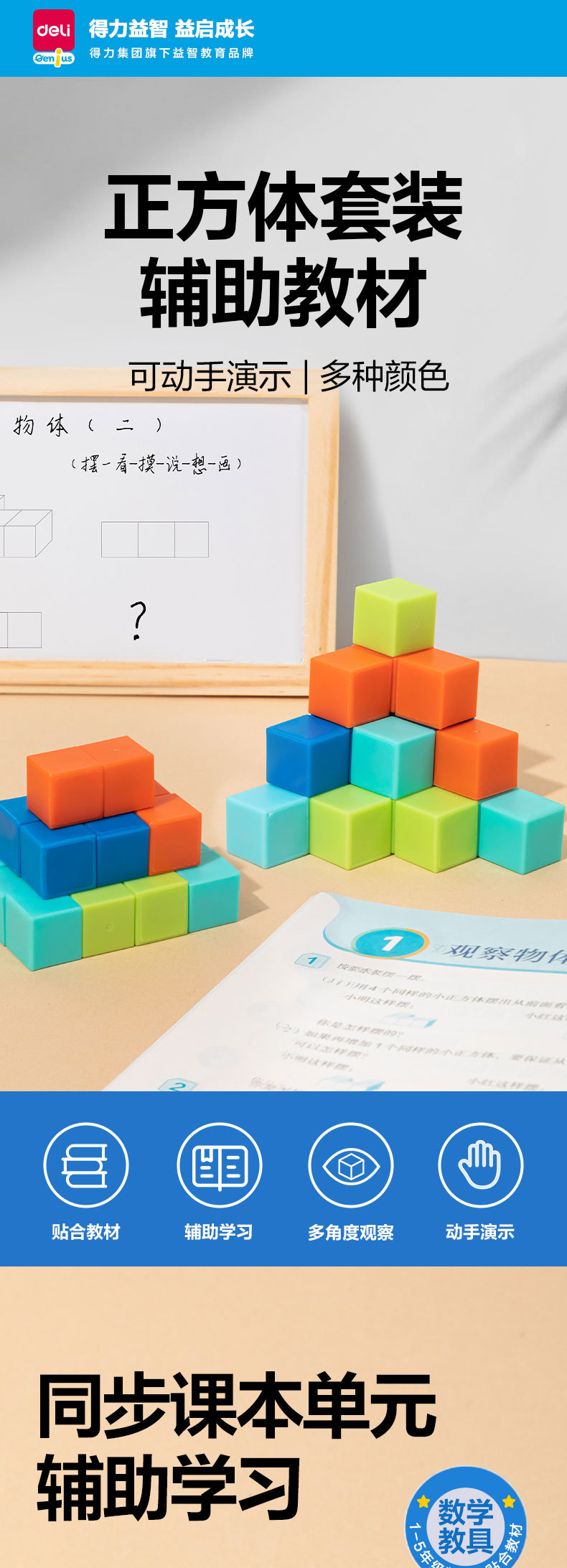 델리 YX471 자기 큐브 기하학 그래픽 자기 투시 모델 빌딩 블록 수학 교육 보조스토어 가기
