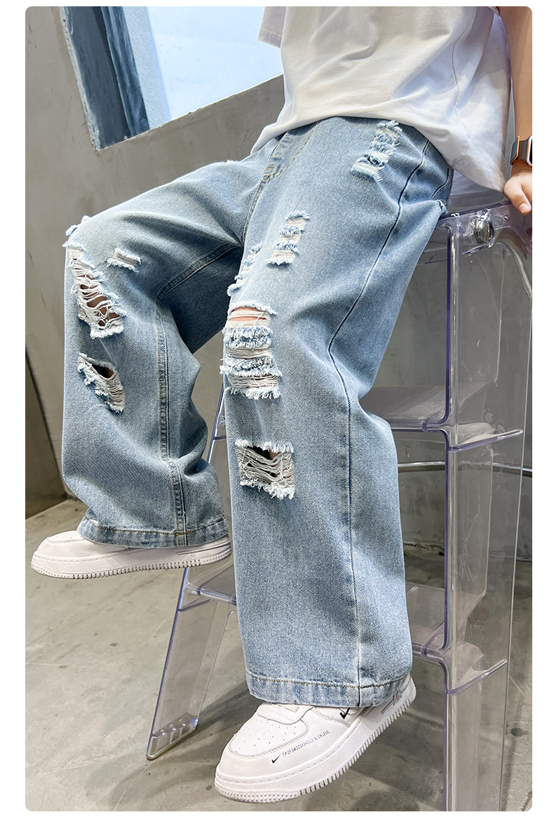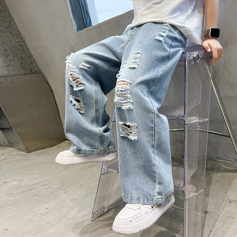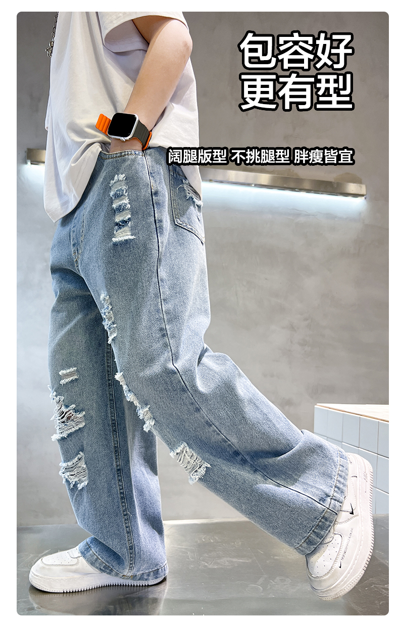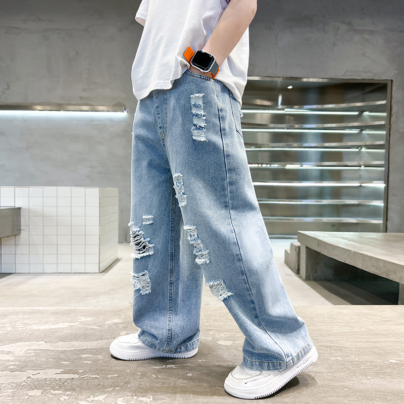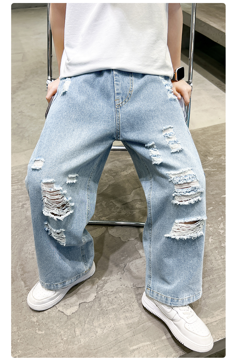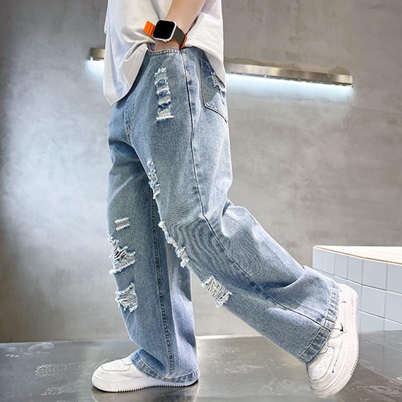 아동복 소년의 봄 착용 바지 2024 새로운 어린이 봄 얇은 큰 어린이 봄 가을 청바지 여름 패션