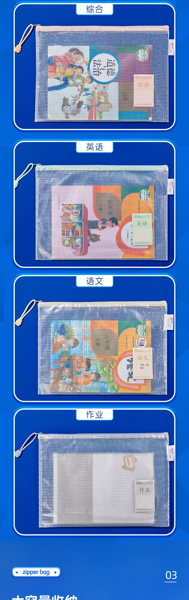 델리 63479B 투명 지퍼 가방 방수 사무실 정보 가방 두꺼운 파일 가방 A4 학생 테스트 종이 보관 가방스토어 가기