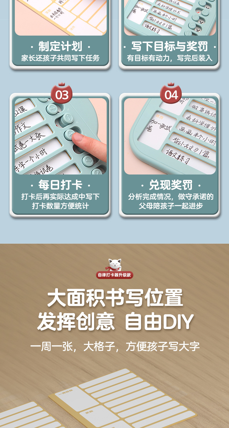 자기 훈련 카드 펀치 초등학생 자기 훈련 유물 겨울 및 여름 방학 학습 일정 어린이 시간 관리자 플래너