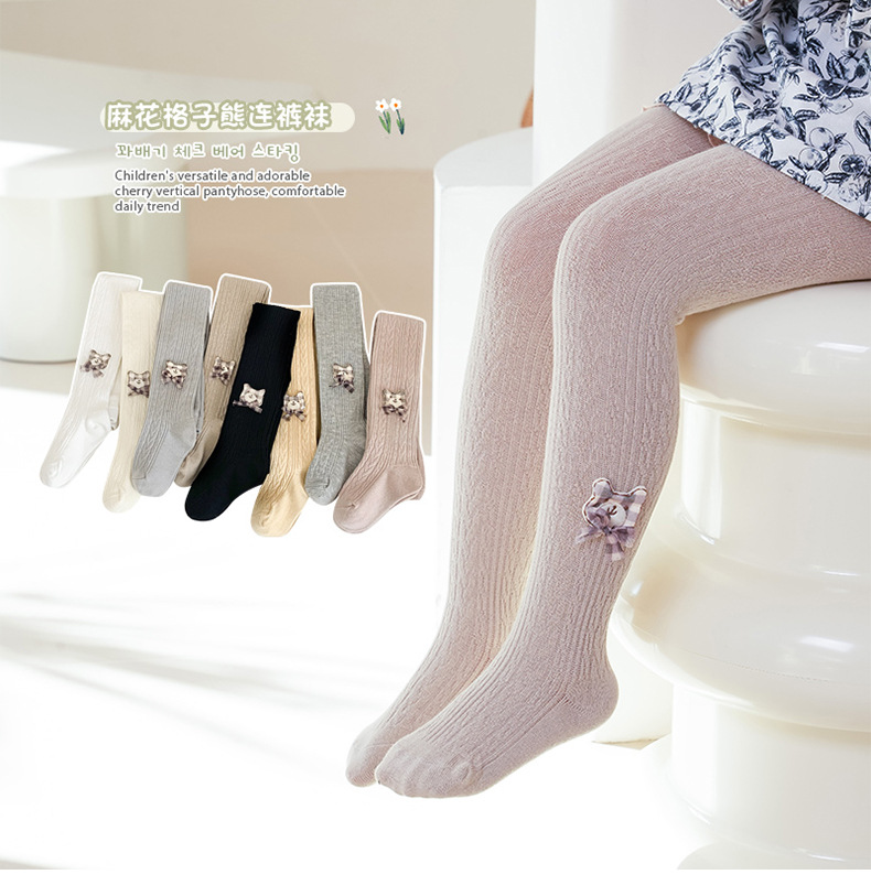 민치 여자 레깅스 봄 새로운 야외 달콤한 어린이 레깅스 귀여운 곰 점프 수트 소녀 바지스토어 가기