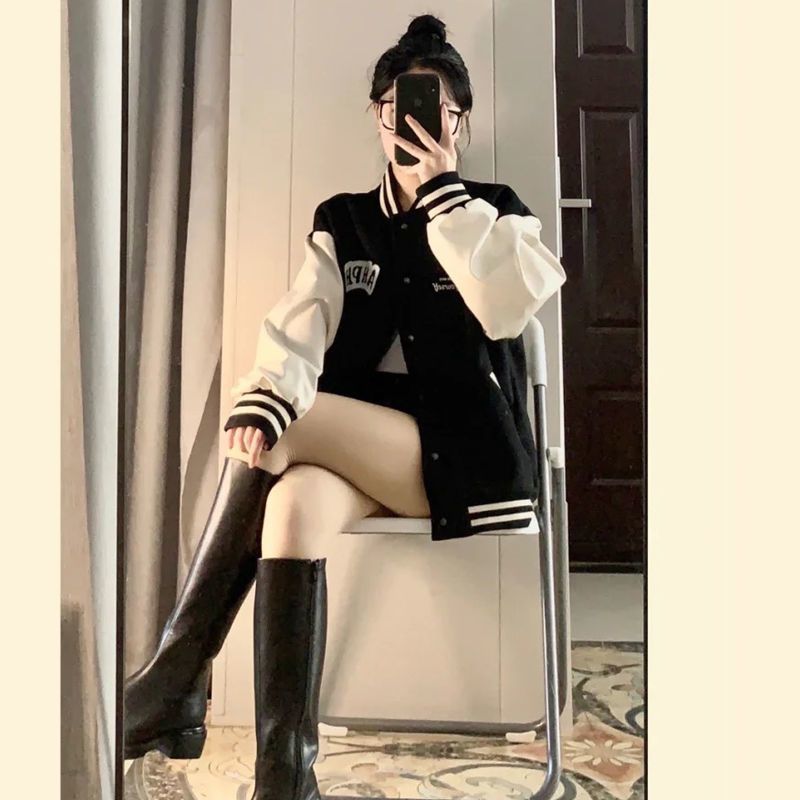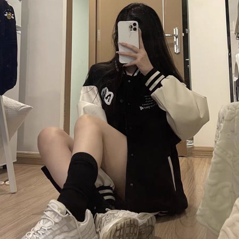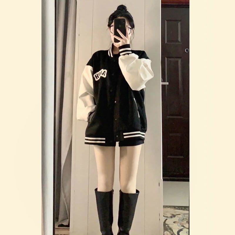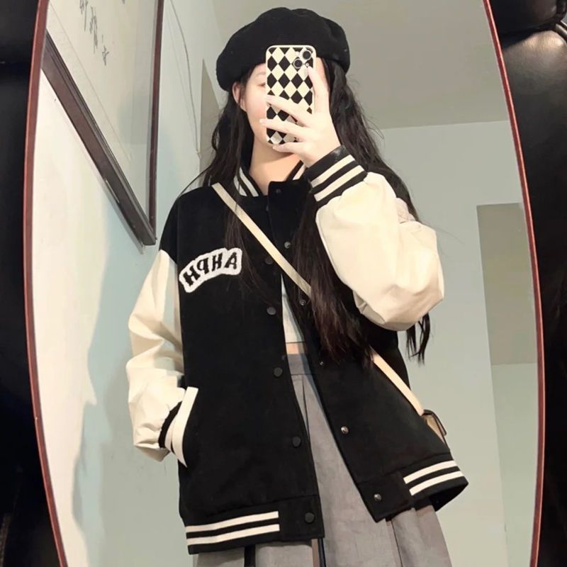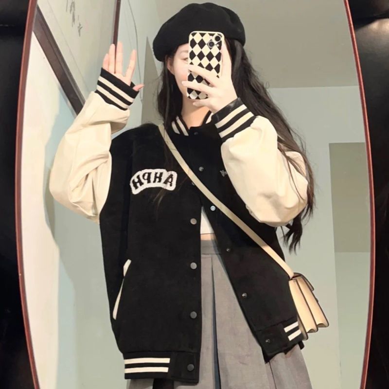 홍콩 스타일의 세련된 야구 유니폼 여성 가을과 겨울 새로운 스티칭 틈새 디자인 캐주얼 스포츠 트렌디 한 재킷 재킷스토어 가기