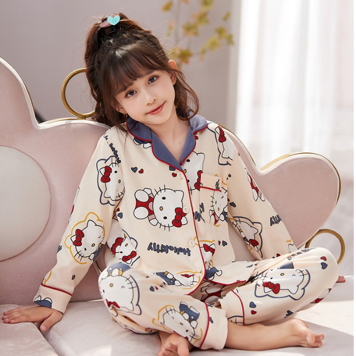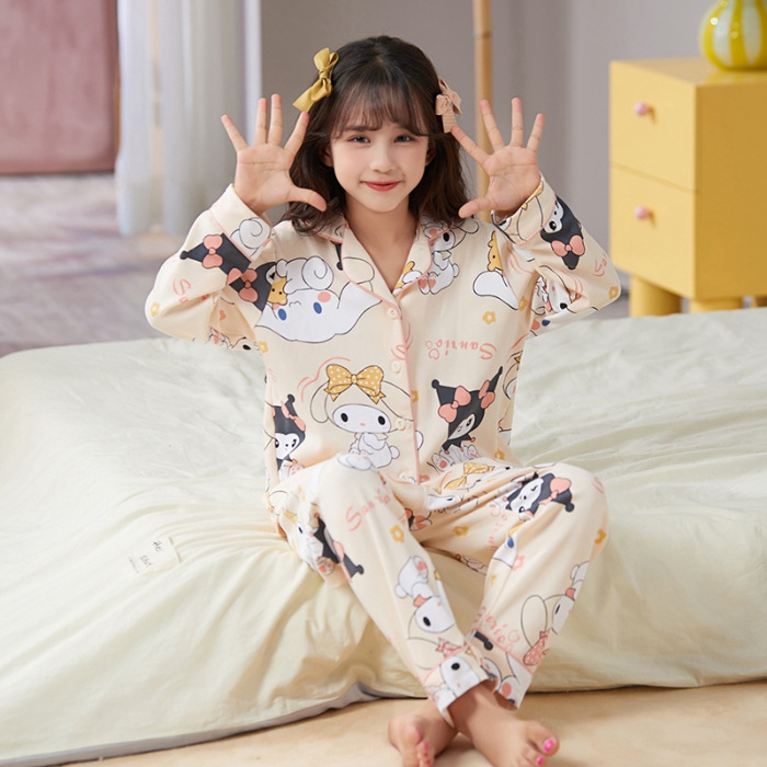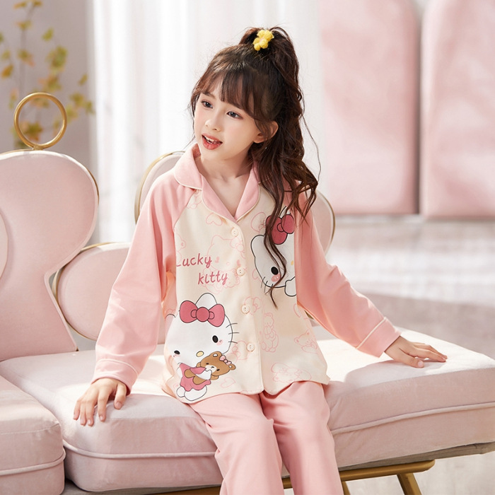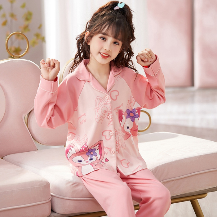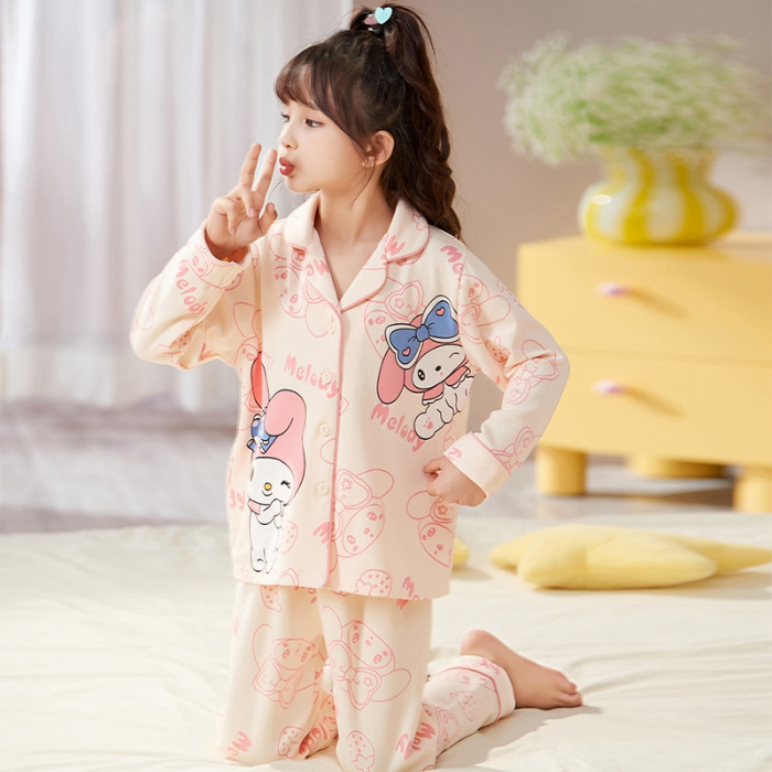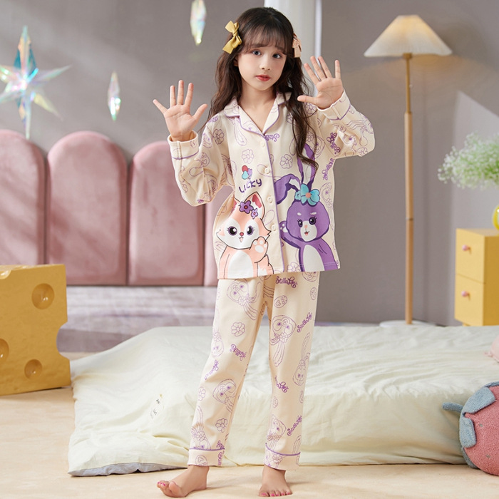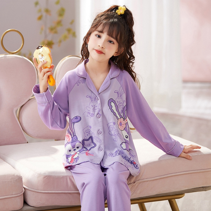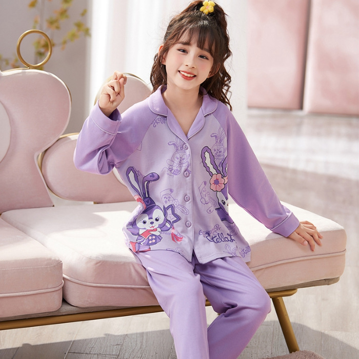 소녀 잠옷 봄과 가을 긴팔 면화 세트 중대형 어린이 소녀 귀여운 만화 토끼 카디건 어린이 가정복스토어 가기