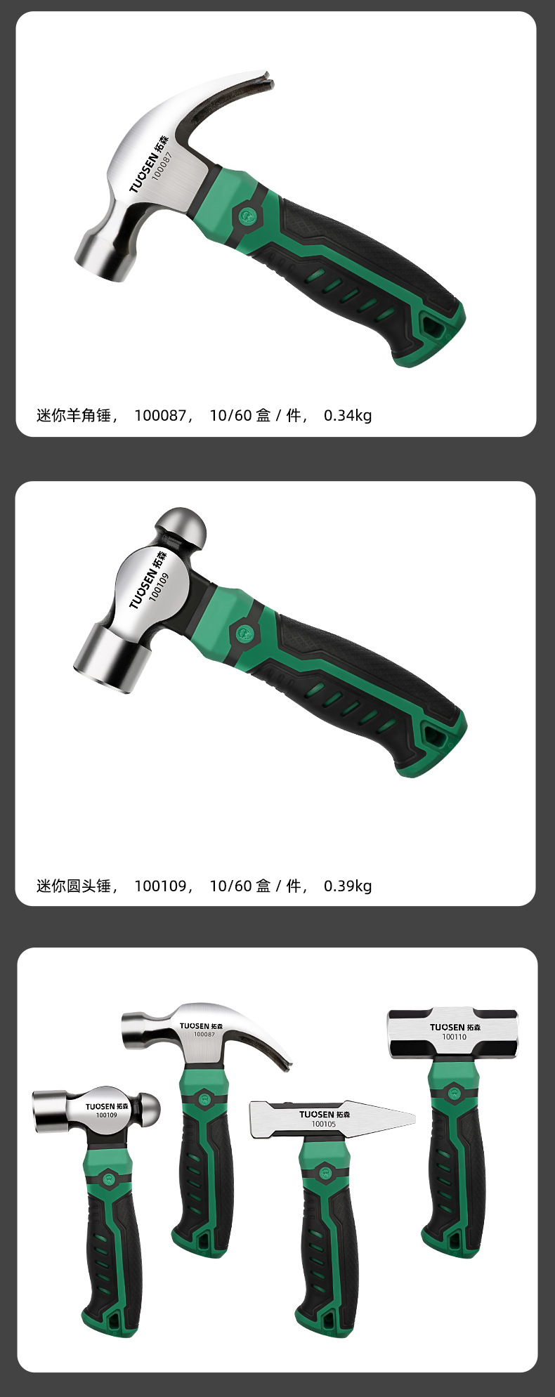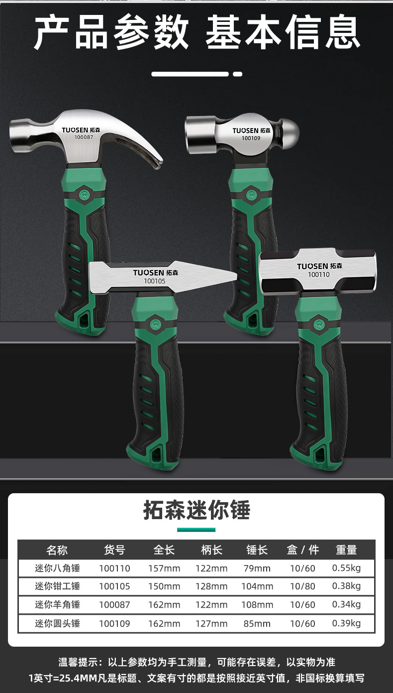 • 100109, tuosen 미니 둥근 머리 망치, 6/상자 60/조각, 0.39kg