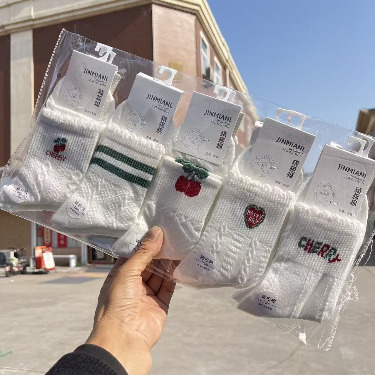 새로운 여성용 컬리지 스타일 면 양말, 가을 겨울용 코마사 면 스포츠 캐주얼 땀 흡수 카펫 러닝 양말스토어 가기